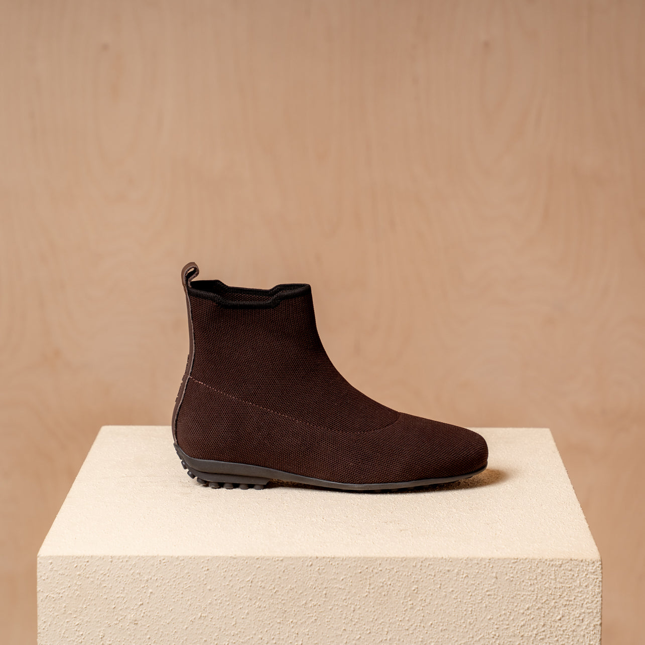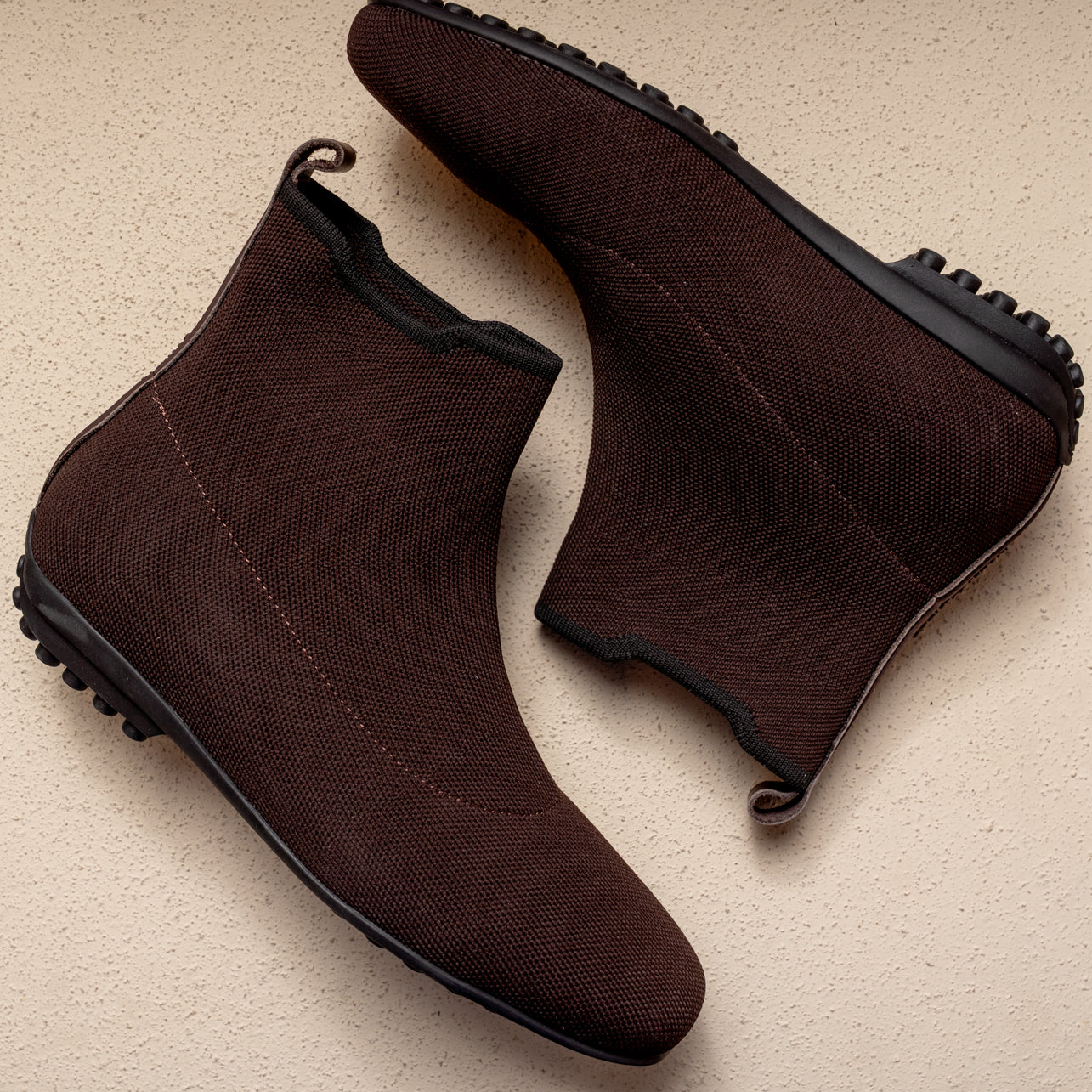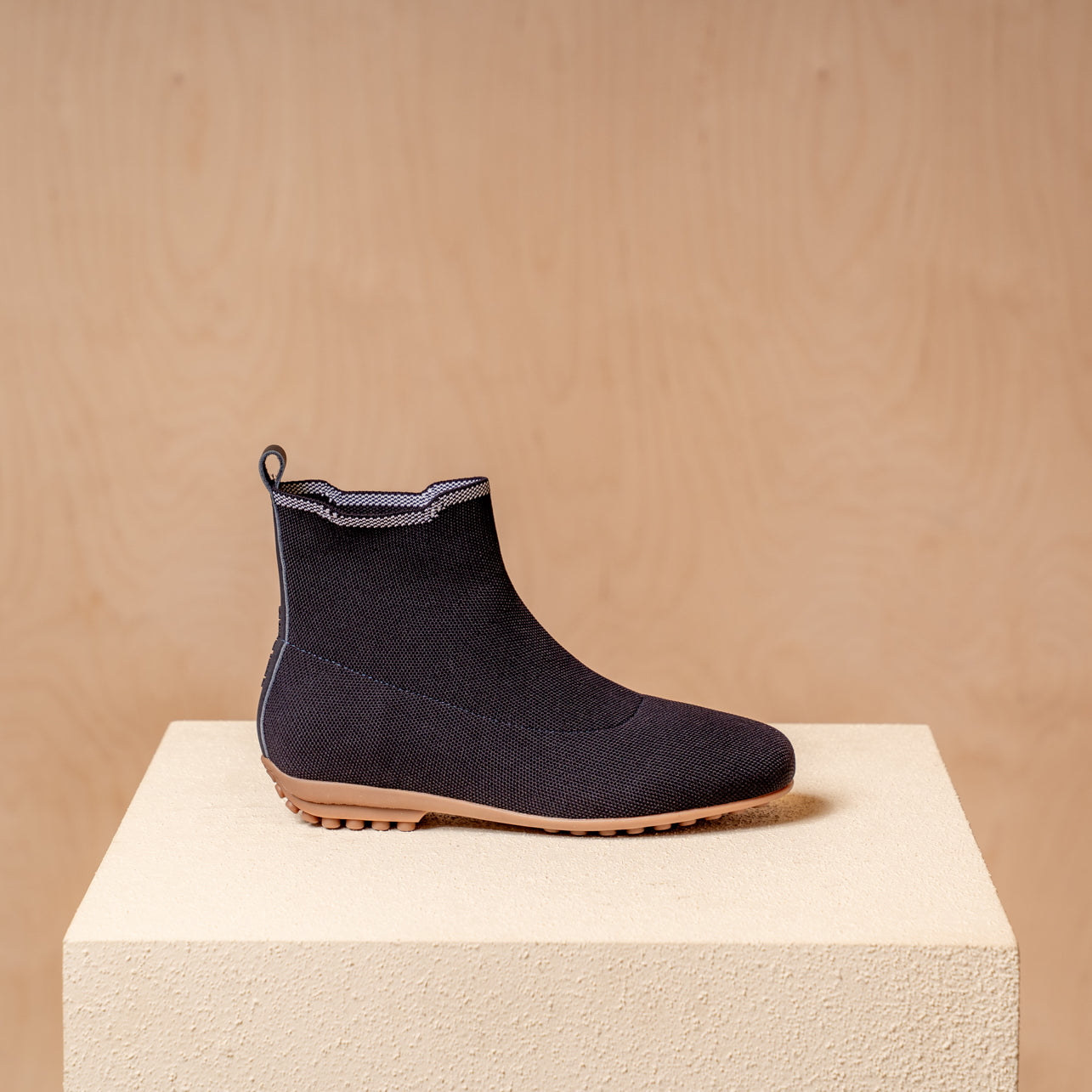 מגפונים סרוגים בצבע נייבי כהה או שוקולד, עם פס עליון קונטרסטי וסוליה איטלקית גמישה.