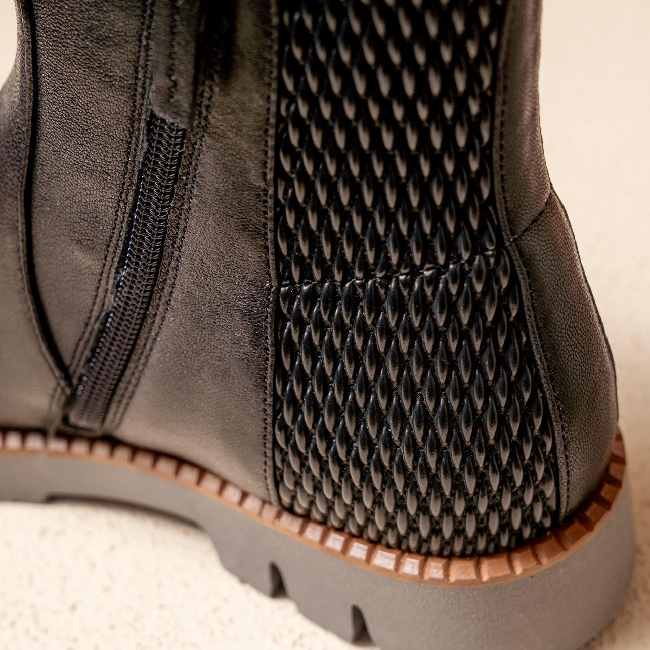 העקב גיאומטרי עם טקסטורת קרוקו – שילוב של יציבות, נוכחות ואסתטיקה.