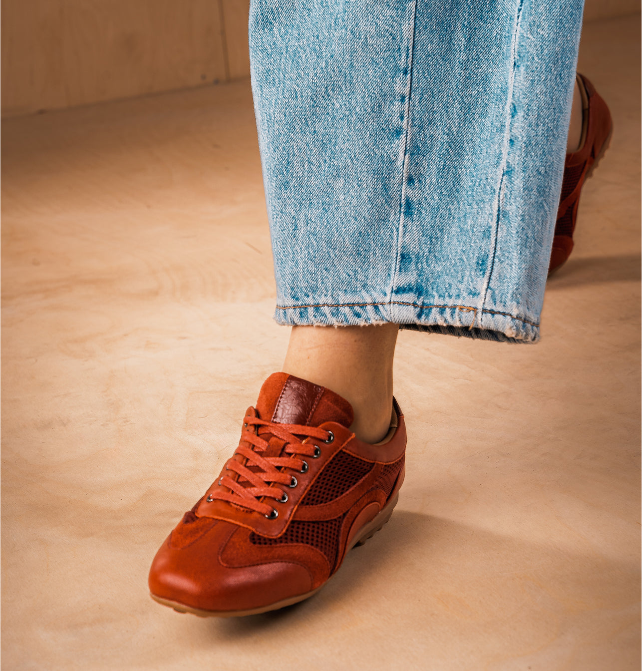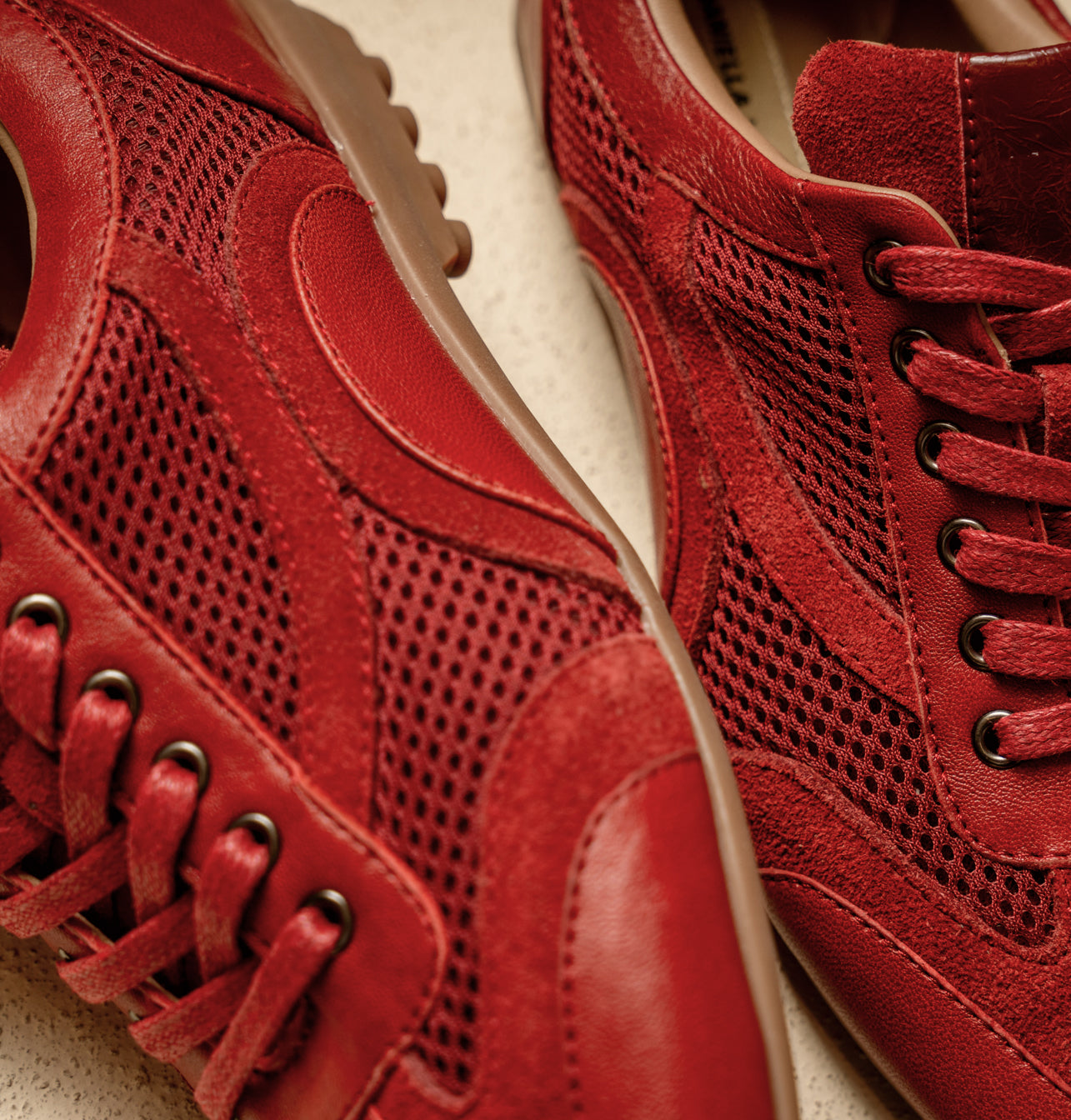 הגרסה האדומה לדגם קנקון האיקוני – סניקרס שמשלבות רשת, זמש ועור בגימור עשיר ומדויק. הסוליה האיטלקית הגמישה נותרה כשהייתה – נוחה, יציבה ומוכרת – אבל הגוון החדש מכניס טוויסט עכשווי שמאיר גם ג’ינס פשוט או שמלה ניטרלית. האדום פה לא מתאמץ, אבל קשה לשכוח אותו.