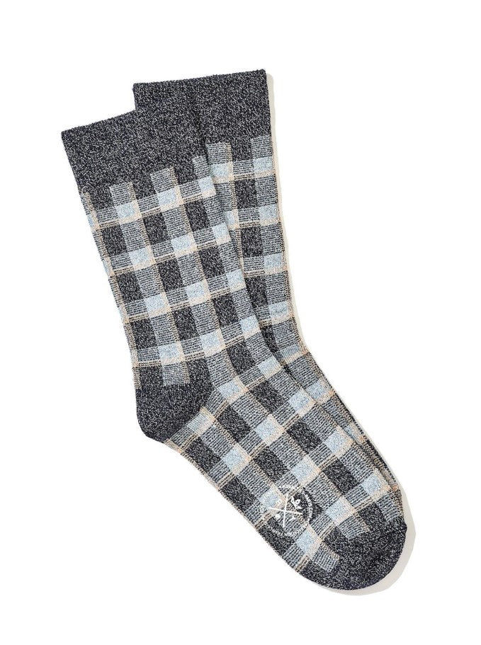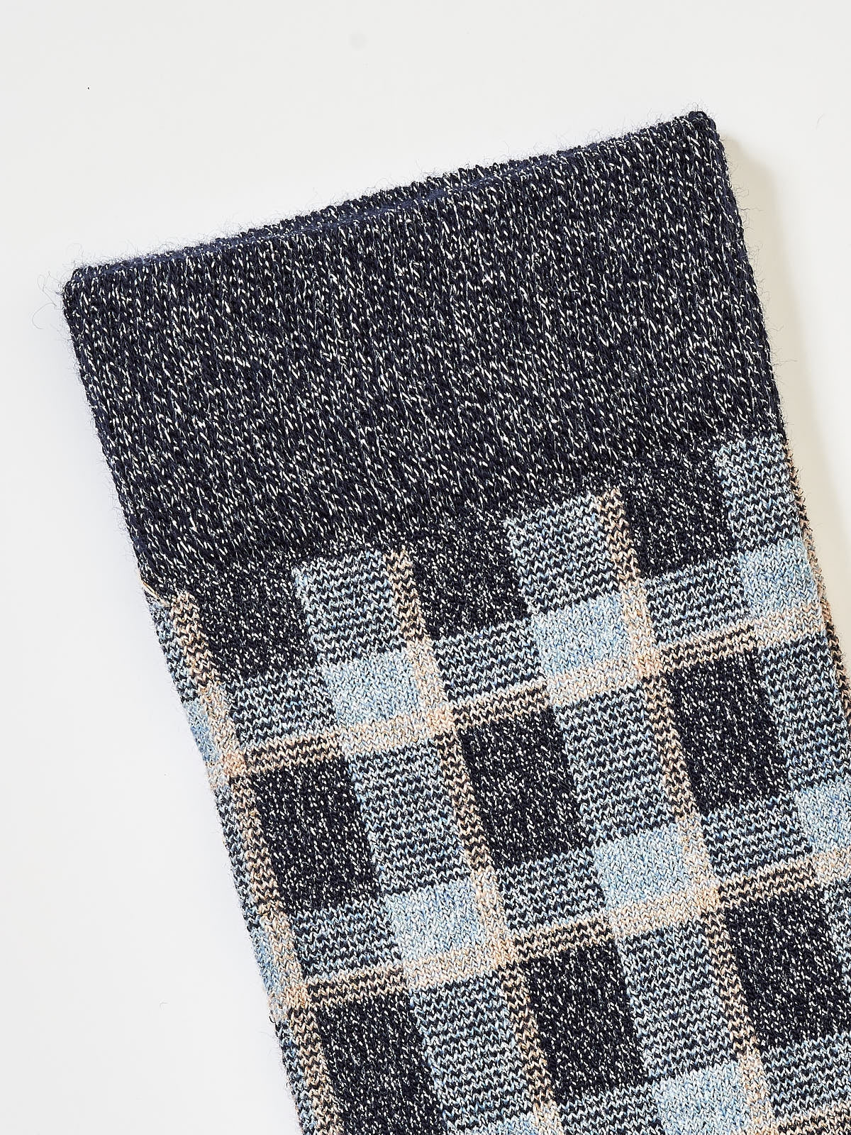 גרביים מנצנצות, סרוגות בדוגמת משבצות טרטן, שילוב של מבריק ומט.