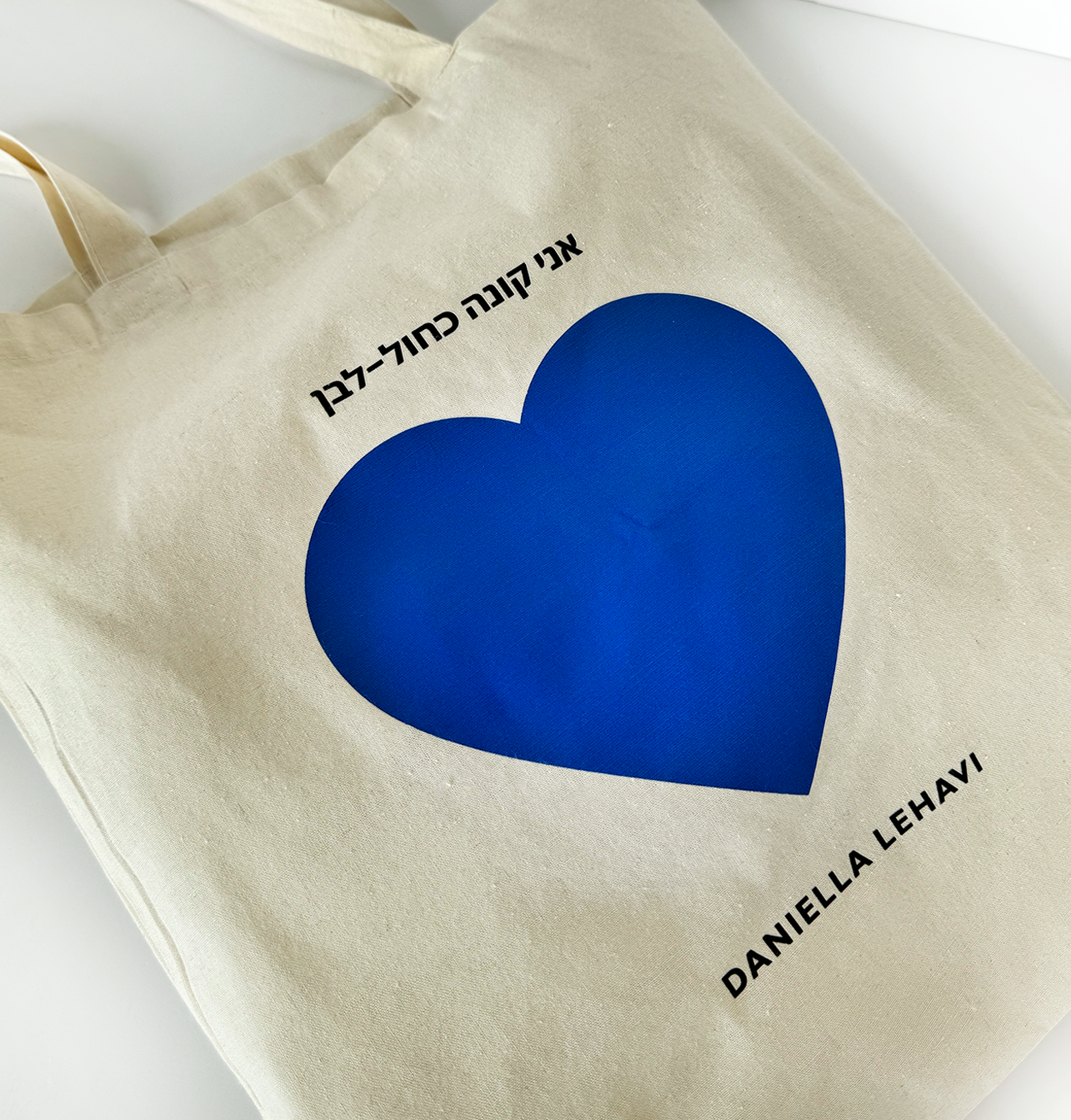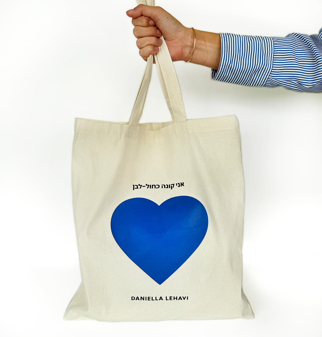 תיק בד של הלב הכחול כאן: מיועד למי שתומכת בעסקים ישראלים ומתגאה ברכישת מוצרי "כחול לבן".