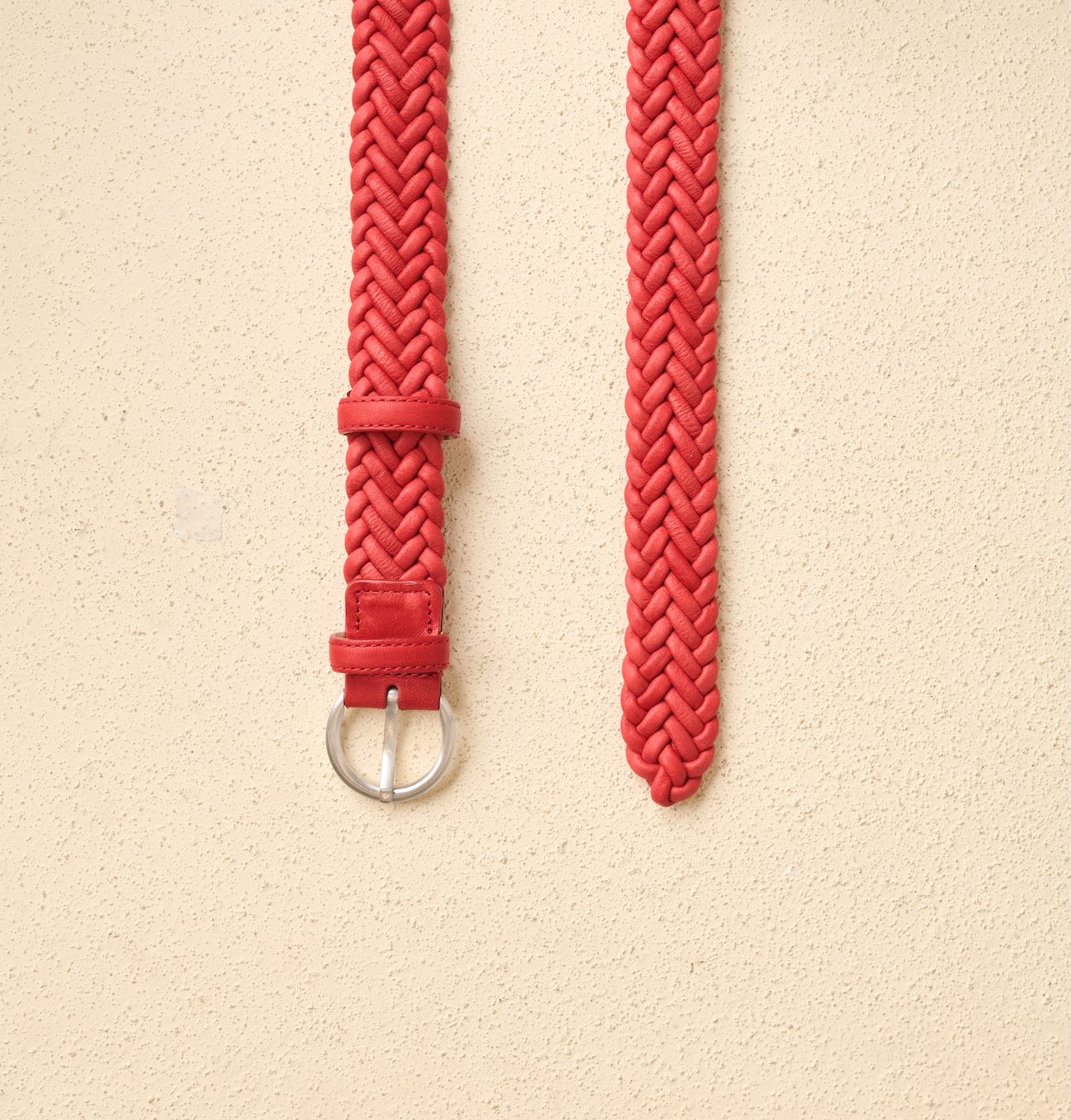 Braided belt  בעלת מראה טבעי ואלגנטי שמוסיף עומק לכל הופעה. הקליעה מעניקה לה טקסטורה עשירה ונוכחות ייחודית, והאבזם המתכתי משלים את המראה באיזון מושלם בין קלאסיות לפשטות מודרנית.