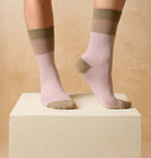 Breton Socks של Royalties הן גרביים במראה פסים קלאסי בהשראת חולצת המרינייר הצרפתית. עשויות תערובת כותנה ולורקס רך במיוחד, עם טקסטורה מבריקה אך עדינה למגע – כך שהלורקס אינו נוגע ישירות בעור ומעניק תחושת נוחות מושלמת. עיצוב הפסים הדק מעניק מראה אלגנטי, נקי ועל־זמני.