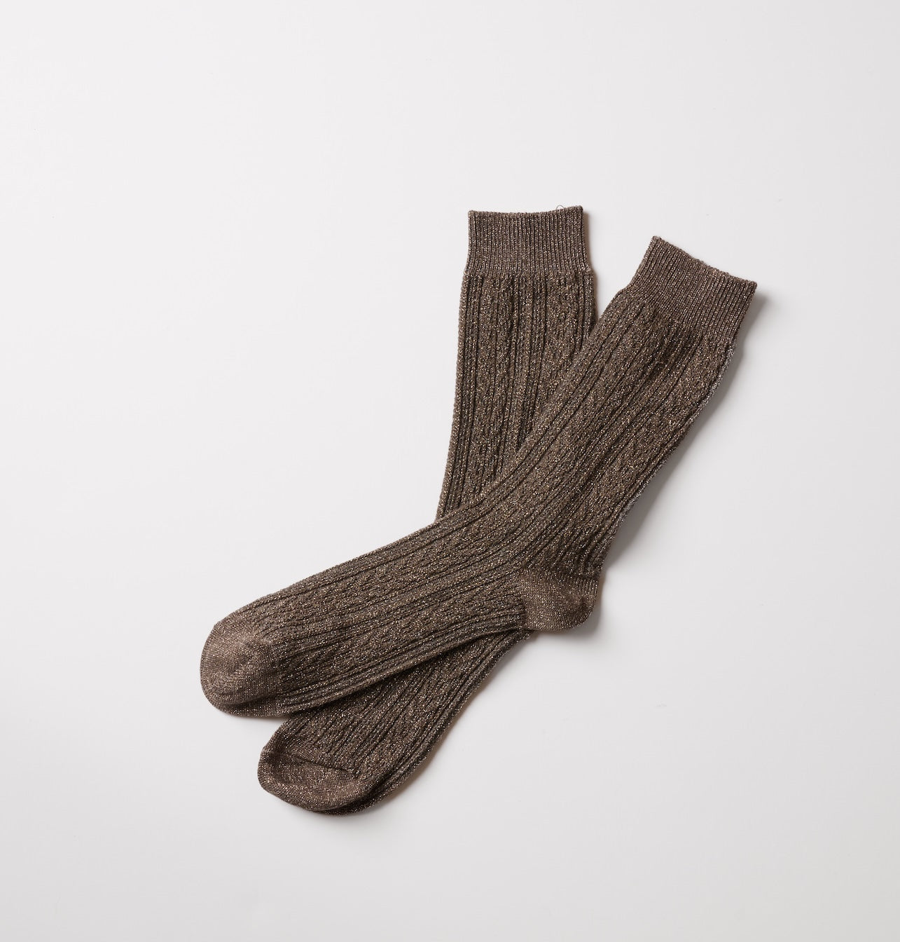 Eddie Socks של Royalties הן גרביים מבריקות בעלות אריגה עדינה בטכניקת "שיבולת חיטה" קלאסית. ההשראה לעיצוב מגיעה מדוגמאות סריגה עתיקות, והביצוע נעשה במכונות מסורתיות – שילוב של מלאכת יד, נוחות ואלגנטיות עדינה.