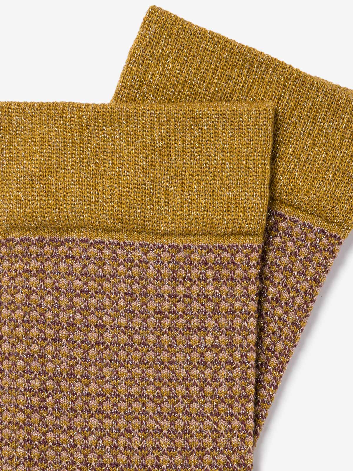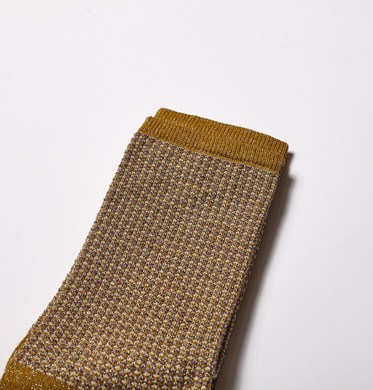 גרביים מנצנצות, סרוגות בדוגמת honeycomb עם 3 חוטים, שילוב של מבריק ומט.
