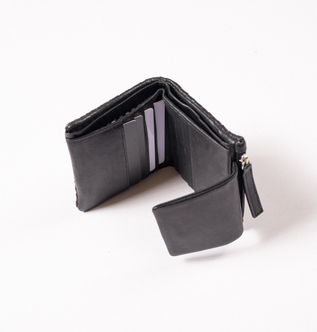 Sahara Small Wallet מכיל את כל מה שאת צריכה. הארנק בעל עיצוב מאורגן היטב ותאים שימושיים רבים המאפשרים למצוא בקלות את כל הדברים החיוניים שלך במקום אחד. הוא עשוי מעור איטלקי איכותי במרקם ארוג עם סוגר מגנטי חיצוני בעל טקסטורה של עור חלק. הארנק מעוצב בקפידה, משלוב פרקטיות ואלגנטיות