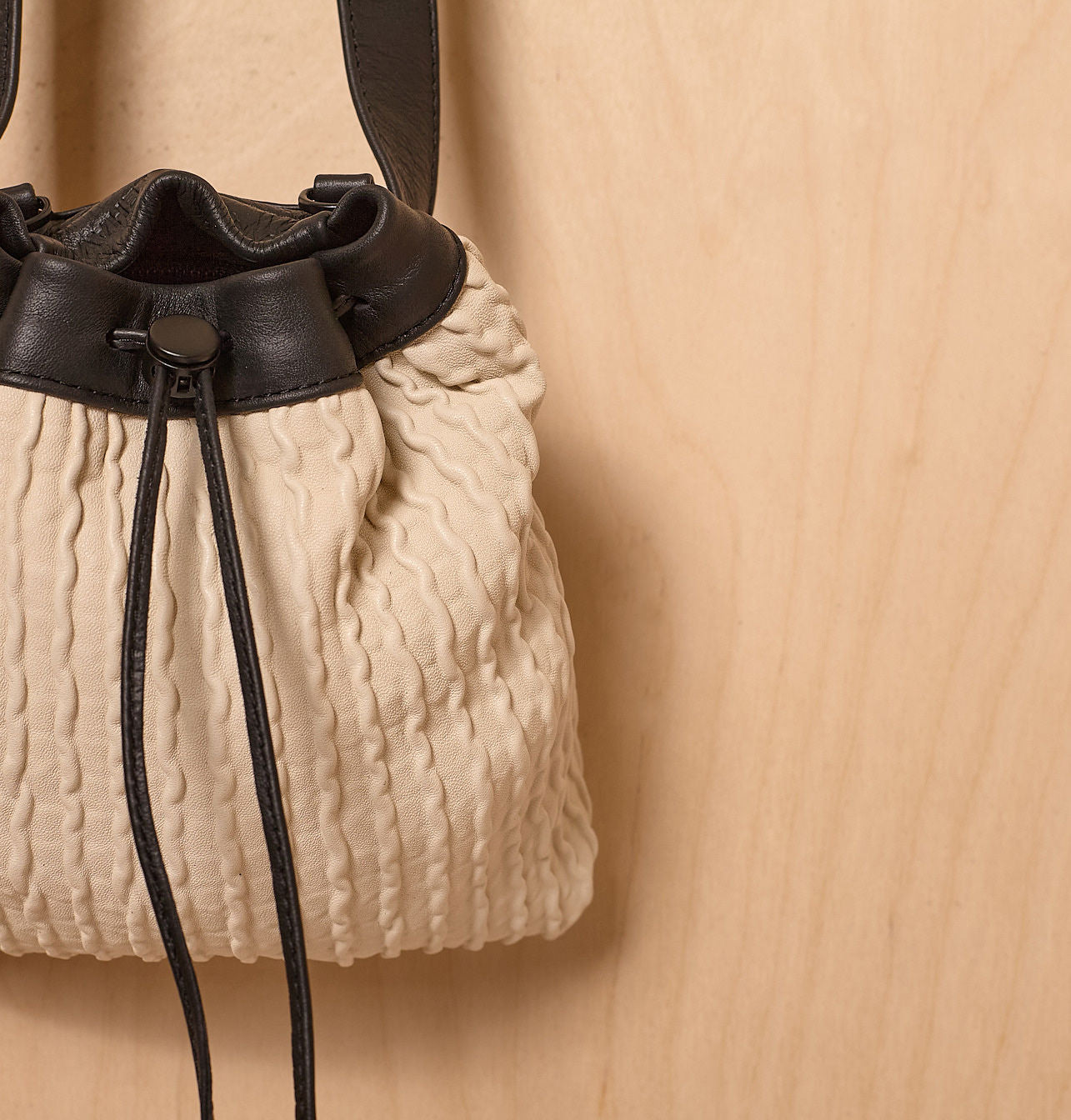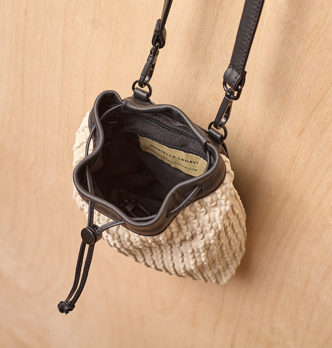 Oasis Belt Bag תיק קטן, מרענן וחדש, בגווני קיץ ועיצוב ייחודי. מיוצר מעור רך וטקסטורת פליסה.