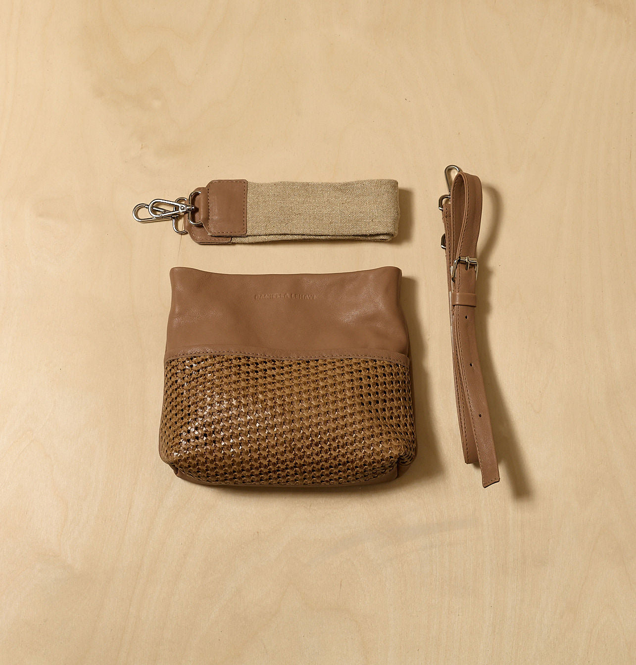 והוא מגיע עם שתי רצועות נשיאה: רצועת צד קצרה מפשתן עם סיומת עור לטאצ' יצירתי ואלגנטי ורצועת קרוסבודי ארוכה ומתכווננת לשימוש יומיומי נוח.