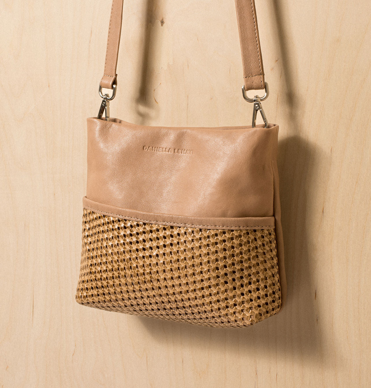 בפריט זה הכיס החיצוני עשוי מעור שנארג בעבודת יד בטכניקה ייחודית.