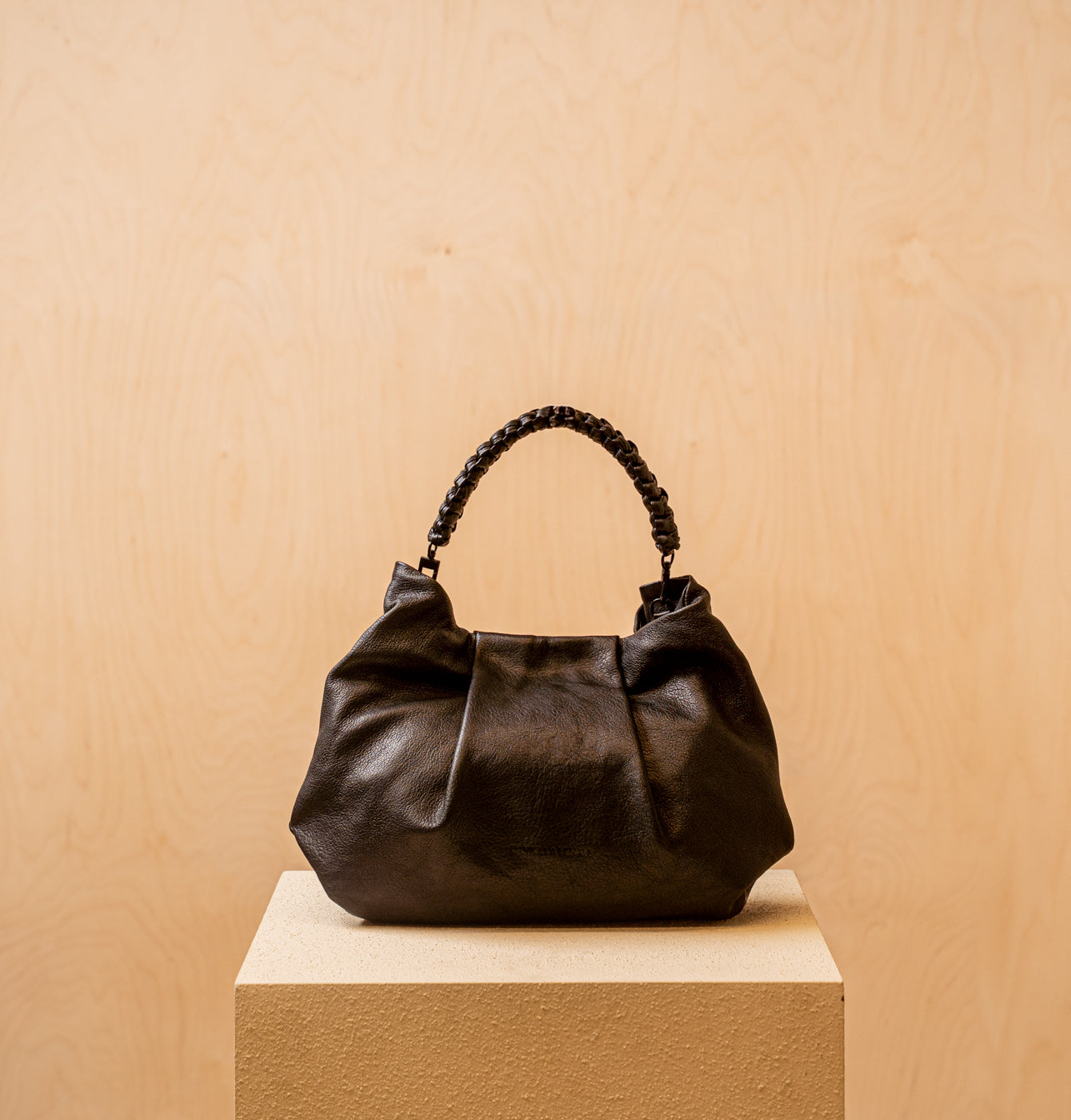 Bali Braided Maxi Bag הוא תיק נשיאה גדול ומרווח, בעל מבנה רך עם קפלי עור שמוסיפים עניין ונפח עדין. עשוי 100% עור איטלקי רך, עם רצועת כתף קלועה שמכניסה טקסטורה ייחודית ונגיעה אמנותית.