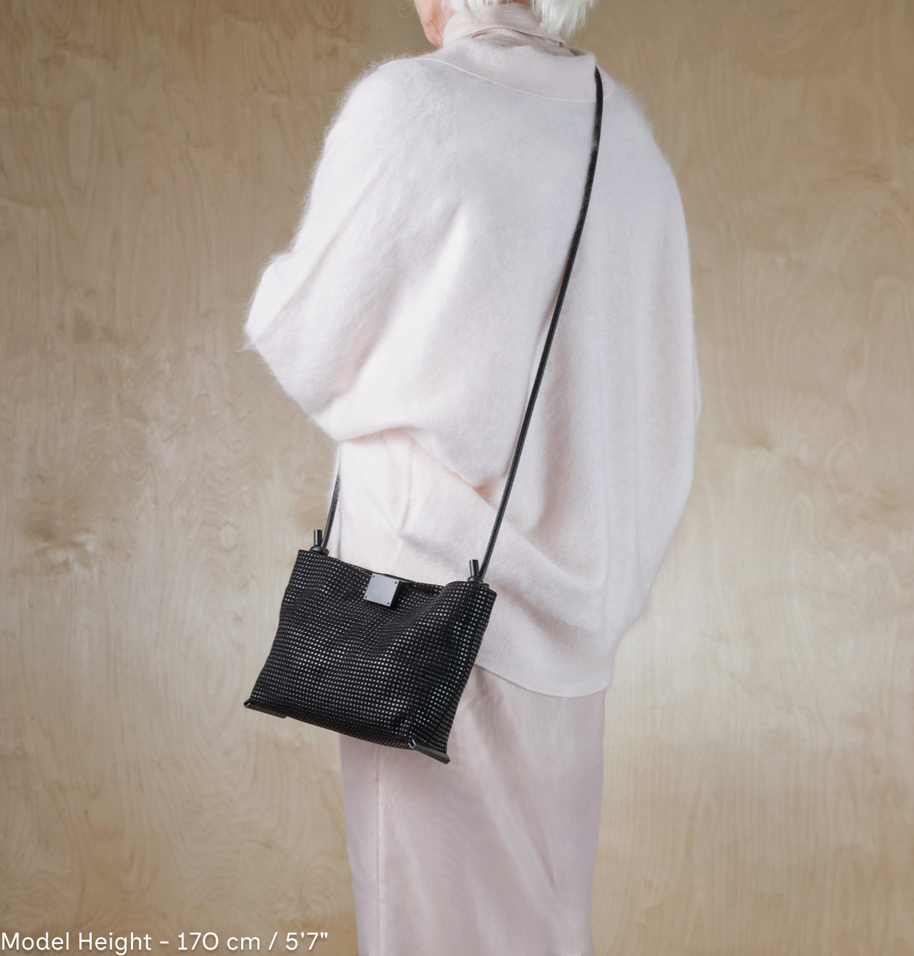 Capri Clutch תיק בגזרה מלבנית ונקייה, עם צללית מאוזנת שמונחת על הגוף בצורה טבעית. העורות במרקם המיוחד ואביזרי המתכת השחורים מעניקים לו אופי עכשווי עם נגיעה תעשייתית, כזה שמייצר נוכחות שקטה ומדויקת. הרצועה הדקה מאפשרת נשיאה נוחה על הכתף או באלכסון, והמבנה שלו מתאים למי שמעדיפה פריט שמחזיק צורה ברורה אך נשאר רגוע ונקי. הניגוד בין העור למתכת מוסיף קו מאופק שמחדד את המראה הכללי.
