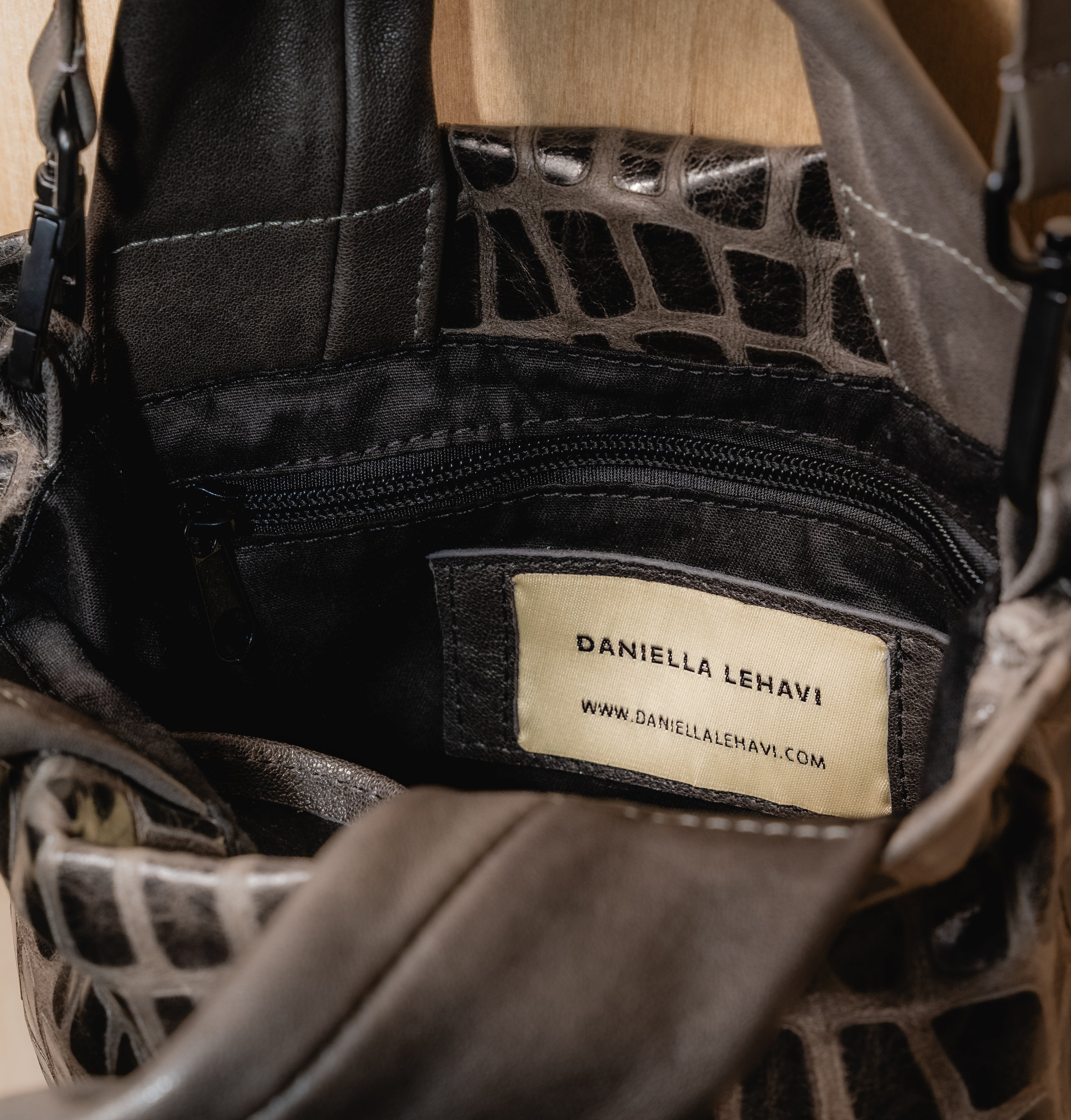 הטקסטורה של העור פותחה בהשראת אחד העורות האייקוניים של דניאלה, שהוצג לראשונה לפני שני עשורים – וריאציה עכשווית על קרוקו, בעור כבשים איטלקי רך עם טקסטורה גיאומטרית, גימור שעווה ותחושת ייחודיות ואופי של עבודת יד.