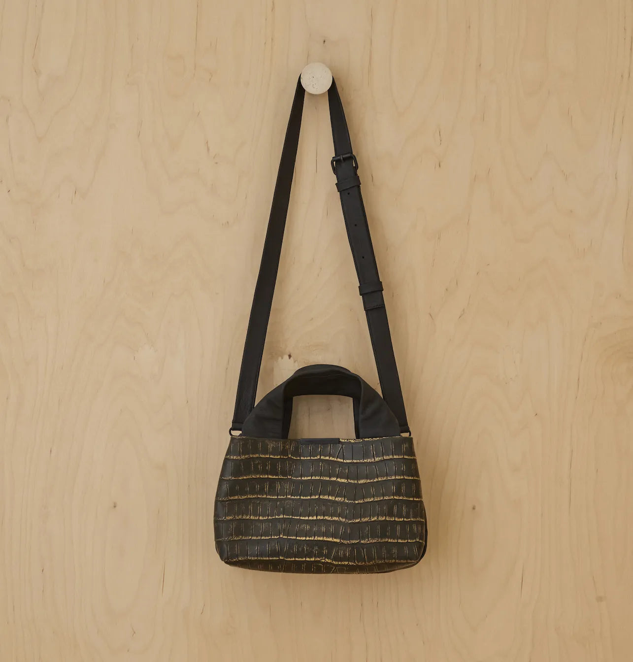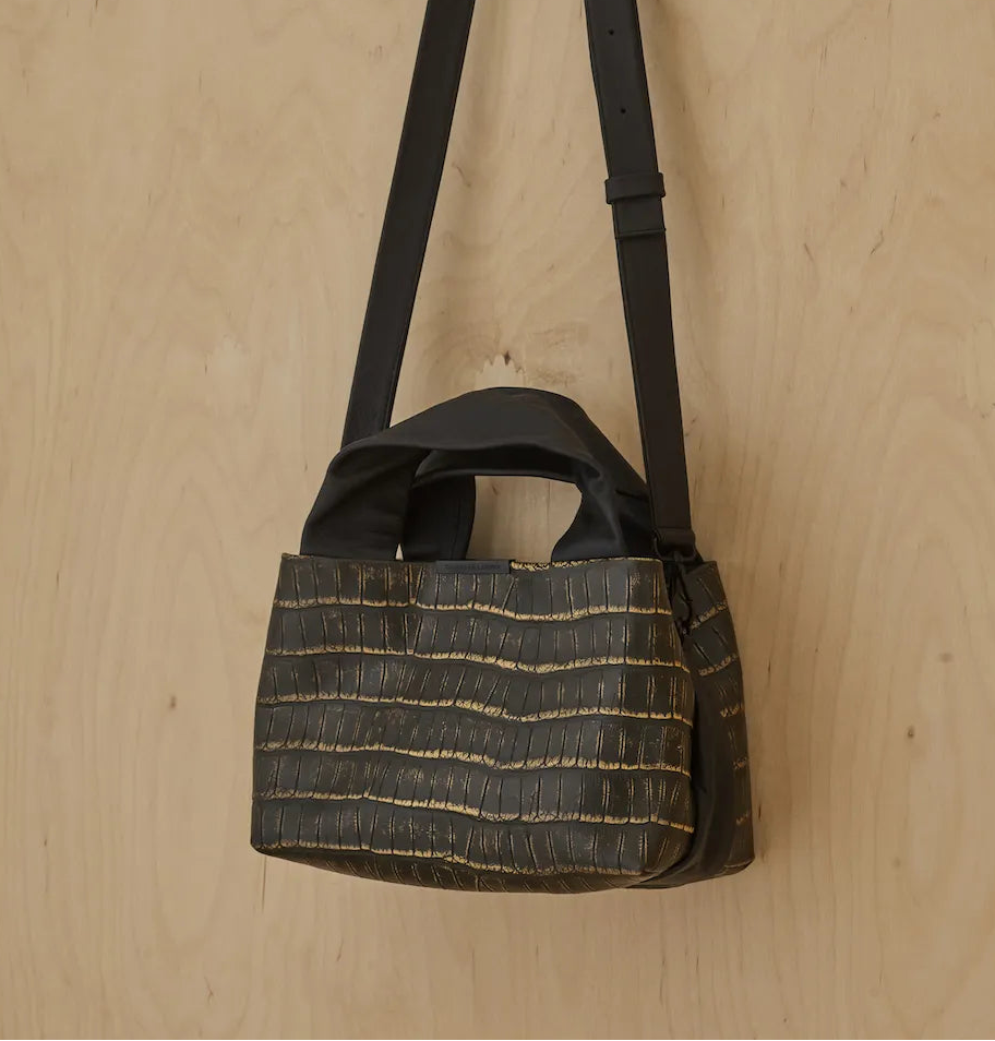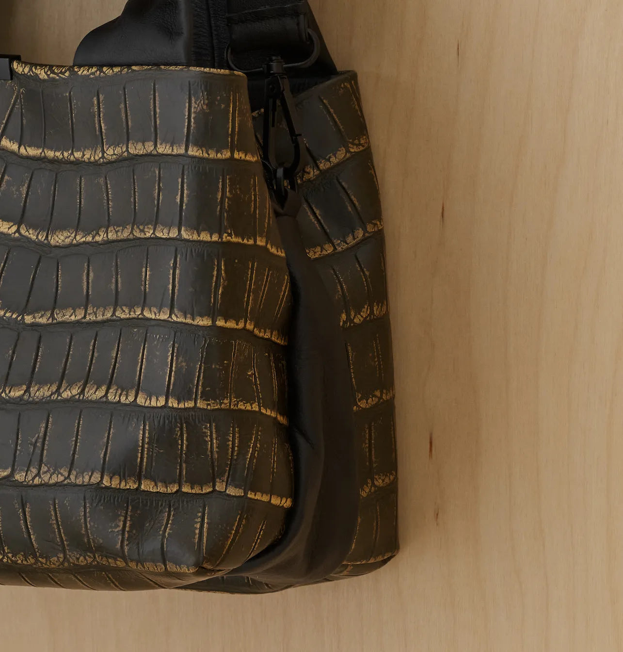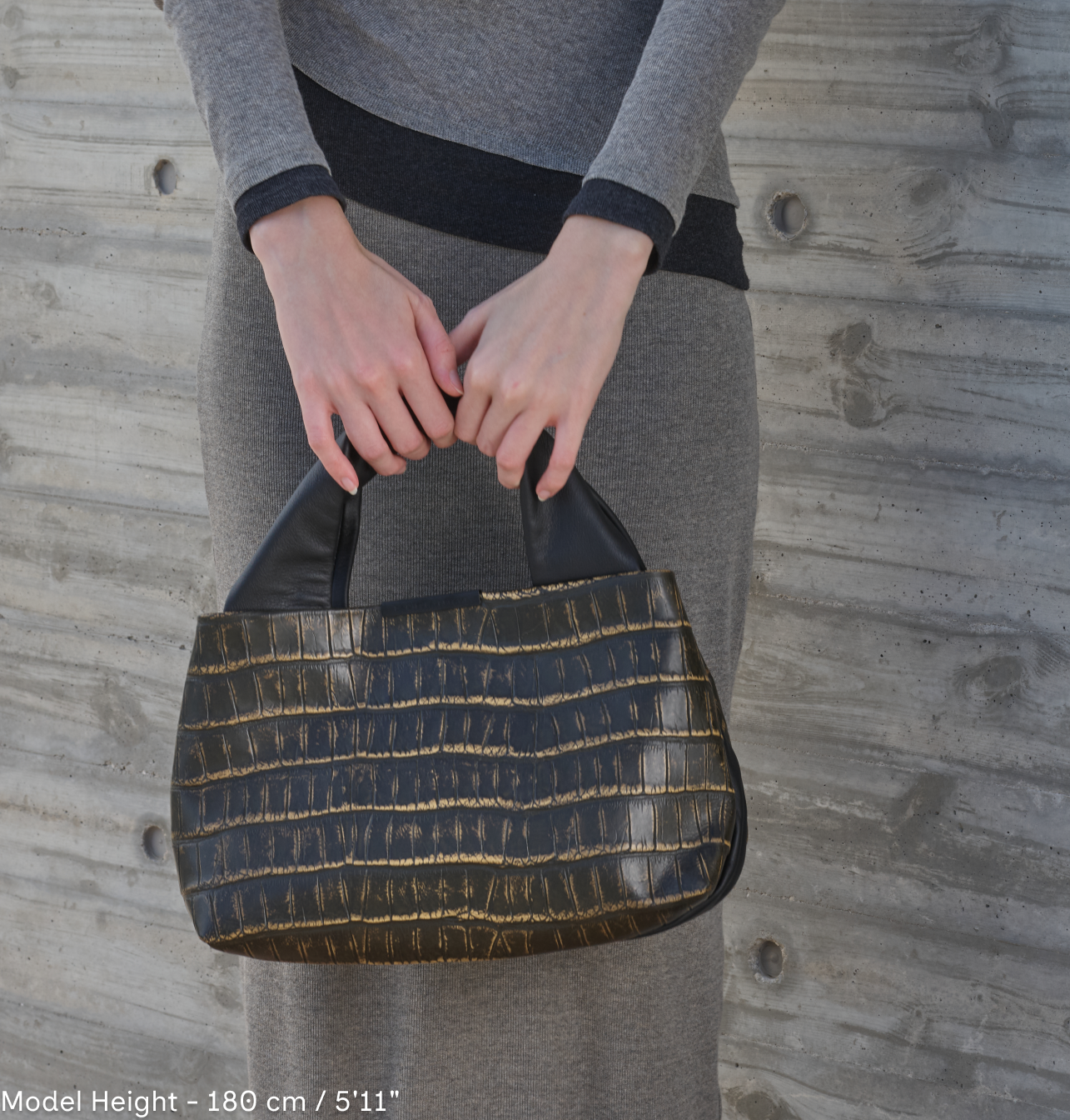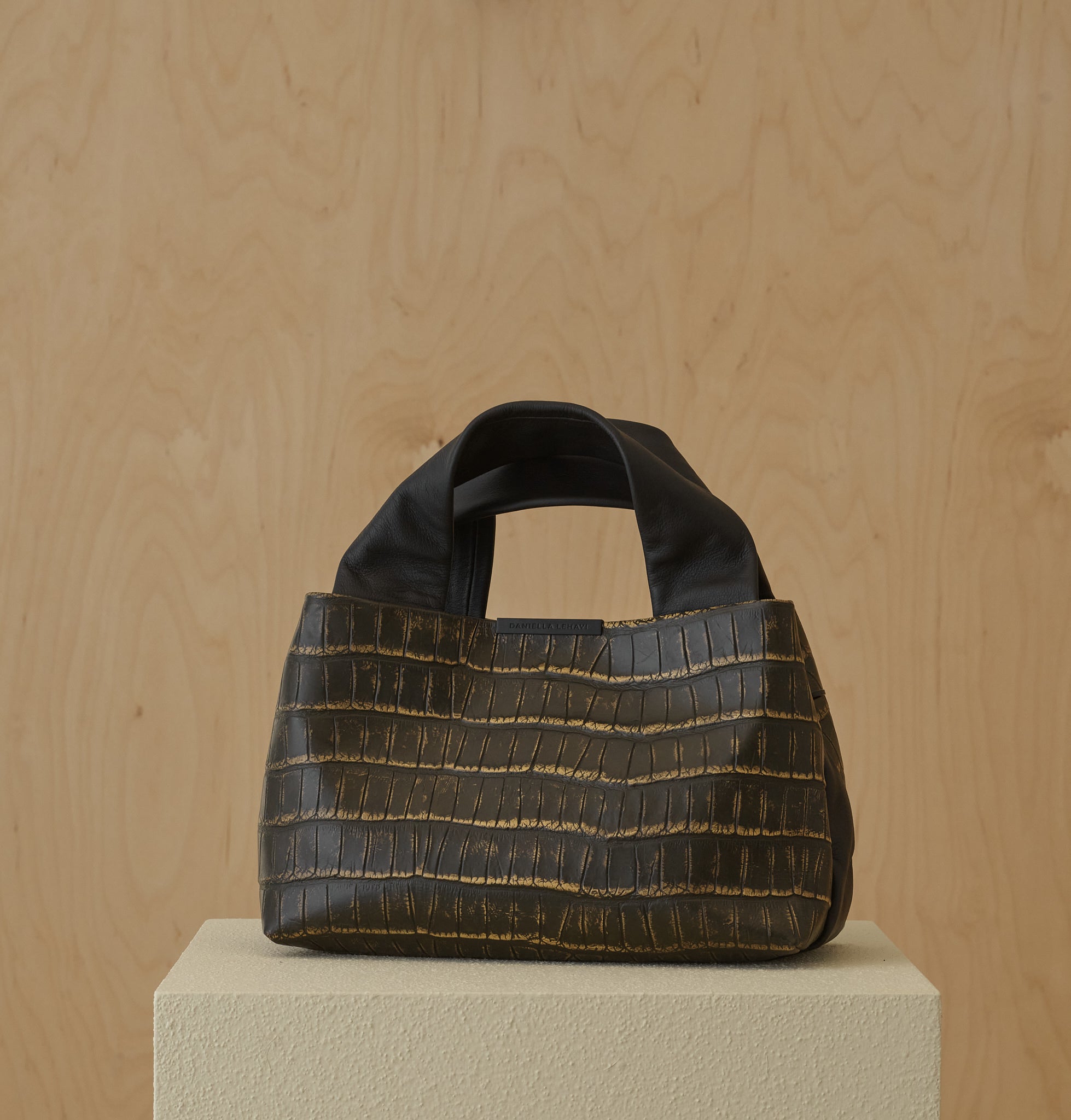 העור והטקסטורה יוצרים עומק ואופי לצורה הקלאסית, עם נוכחות שקטה וברורה.