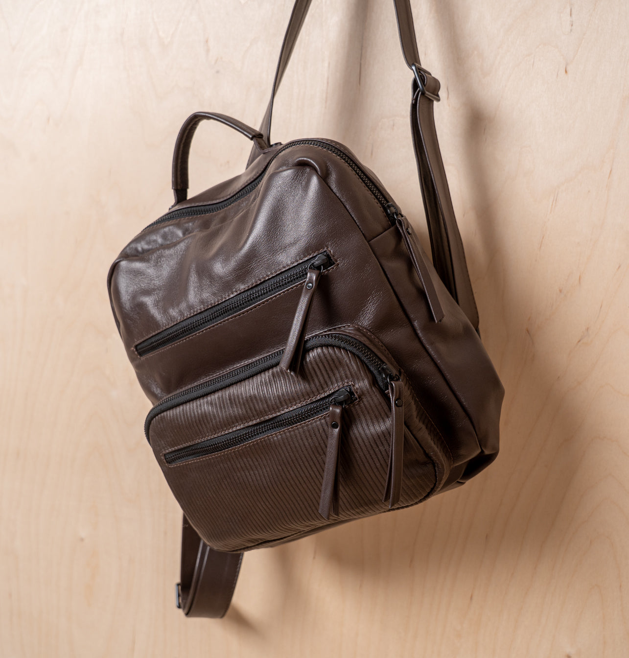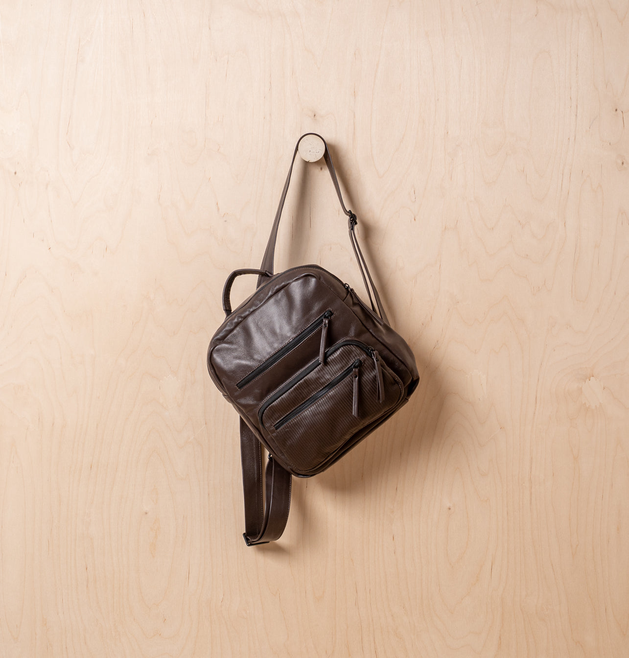 Memphis Backpack הוא תיק גב בעיצוב עכשווי עם קריצה לארכיון של דניאלה – משלב טקסטורות עור שונות שיוצרות מראה עשיר ורב־ממד, ומעניק איזון בין אסתטיקה מוקפדת לפרקטיות יומיומית.