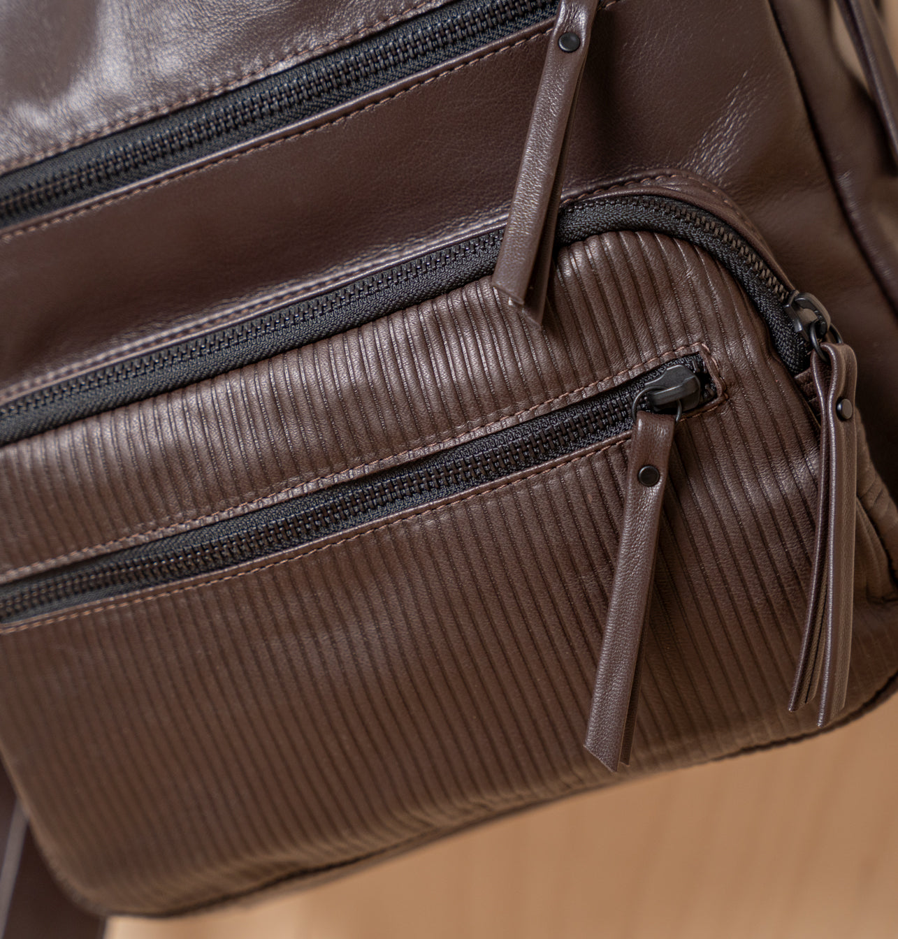 המבנה הרך אך המאורגן של התיק מציע חלוקה חכמה ונוחה: תא ייעודי למחשב נייד בגודל 13", כיסים קדמיים נגישים ותא אחורי עם רוכסן לשמירה בטוחה. רצועת העור האחורית מאפשרת תלייה נוחה על מזוודה, מה שהופך אותו לפריט אידיאלי לנסיעות ולעבודה כאחד.
