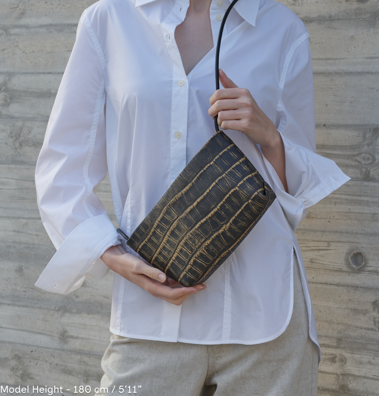 Vega Small Clutch הוא תיק במבנה קומפקטי וקווים נקיים.