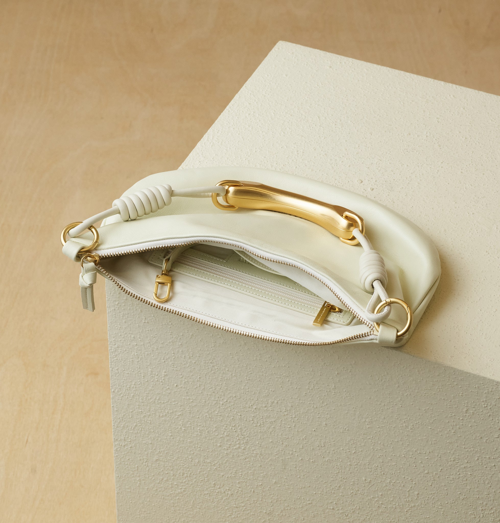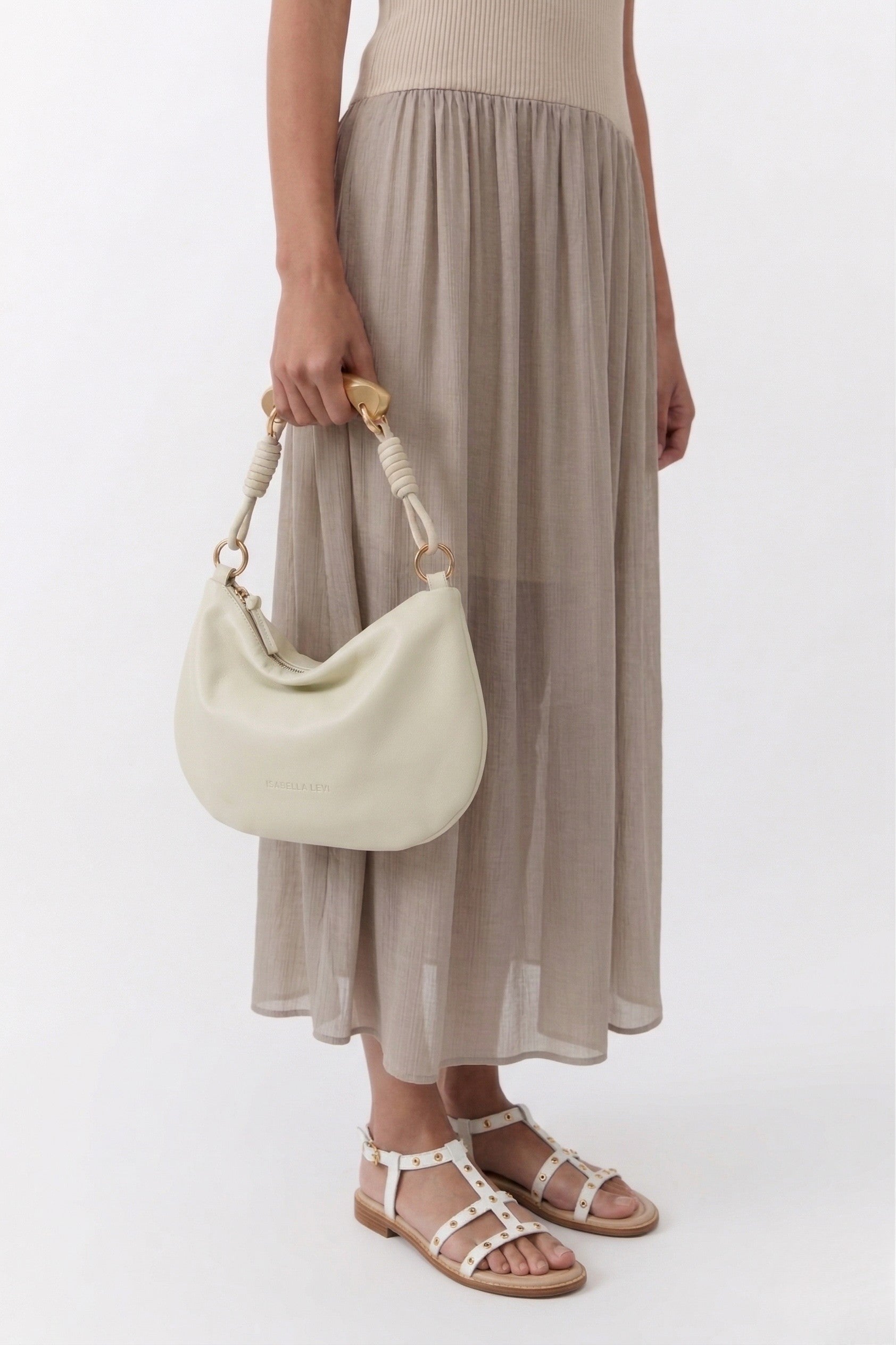 Venus Half Moon הוא גרסה קטנה ומעודנת יותר של דגם Venus, עם קו חצי ירח מודגש ותחושה קלילה במיוחד. כמו הדגם הגדול, גם הוא מגיע עם שתי רצועות, קצרה וארוכה, ומאפשר מעבר טבעי בין נשיאה יומיומית ללוק ערב מדויק יותר. המפתח הרחב שומר על נוחות שימוש, והצורה הרכה והמחויכת שלו מעניקה לו אופי חינני וייחודי. זהו תיק קומפקטי למי שאוהבת להרגיש קלילה, מסודרת ומדויקת.