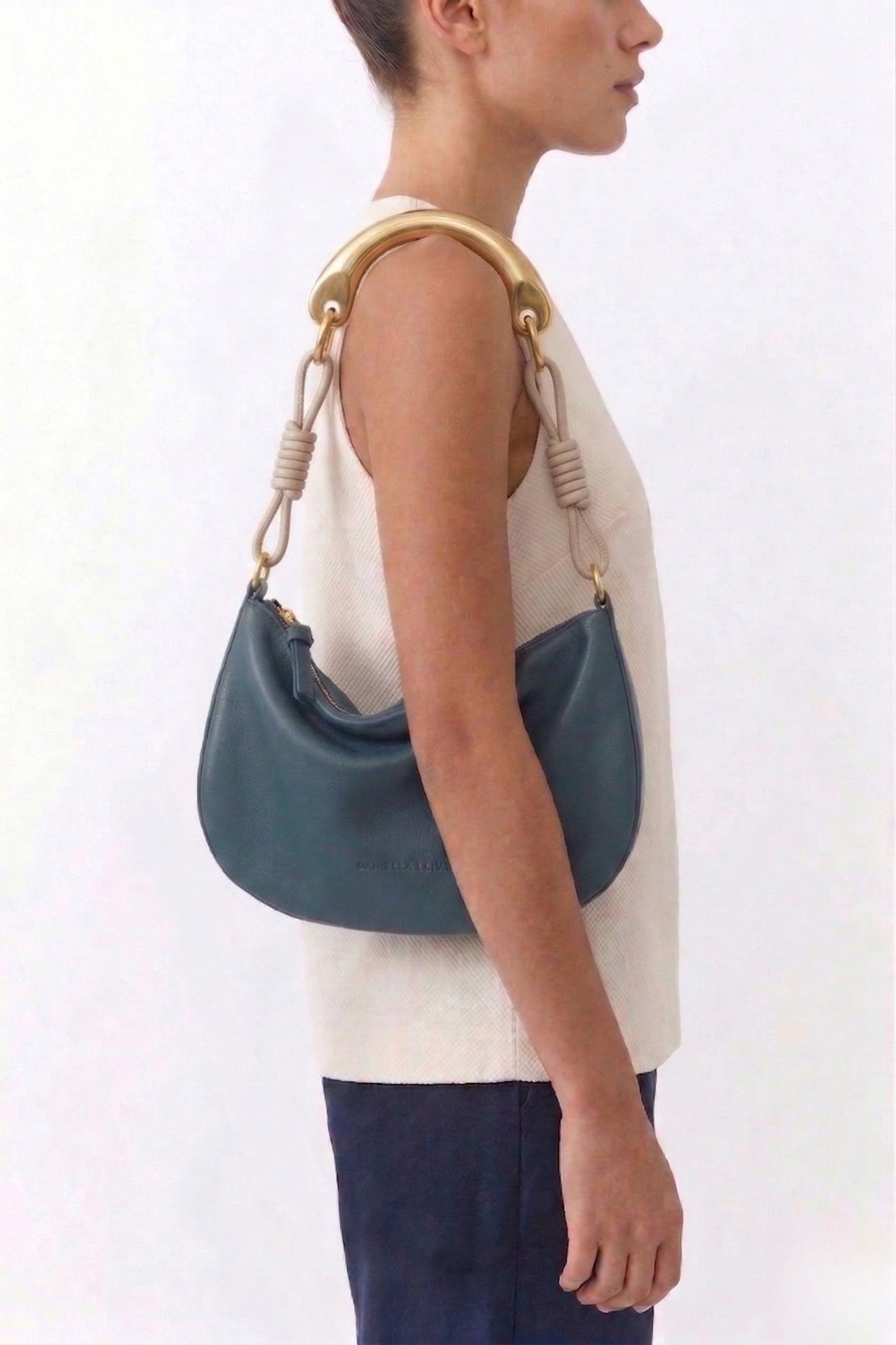 Venus Half Moon הוא גרסה קטנה ומעודנת יותר של דגם Venus, עם קו חצי ירח מודגש ותחושה קלילה במיוחד. כמו הדגם הגדול, גם הוא מגיע עם שתי רצועות, קצרה וארוכה, ומאפשר מעבר טבעי בין נשיאה יומיומית ללוק ערב מדויק יותר. המפתח הרחב שומר על נוחות שימוש, והצורה הרכה והמחויכת שלו מעניקה לו אופי חינני וייחודי. זהו תיק קומפקטי למי שאוהבת להרגיש קלילה, מסודרת ומדויקת.