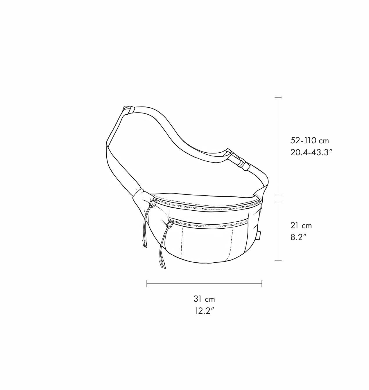 • רוחב: 31 ס"מ, גובה 21 ס"מ, עומק: 8 ס"מ, אורך רצועה: 52-110 ס"מ
