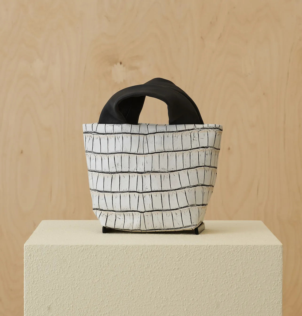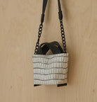 Alexa Chain Mini תיק בעל צללית רכה שמחזיקה צורה נקייה ומדויקת. הידיות מאפשרות אחיזה טבעית ונינוחה, רגליות המתכת המוכרות שלנו מוסיפות קו נקי וברור, הן נותנות עומק למפגש בין רוך למבנה. יש בו אלגנטיות ונוכחות שמורגשת מבלי לבקש תשומת לב.