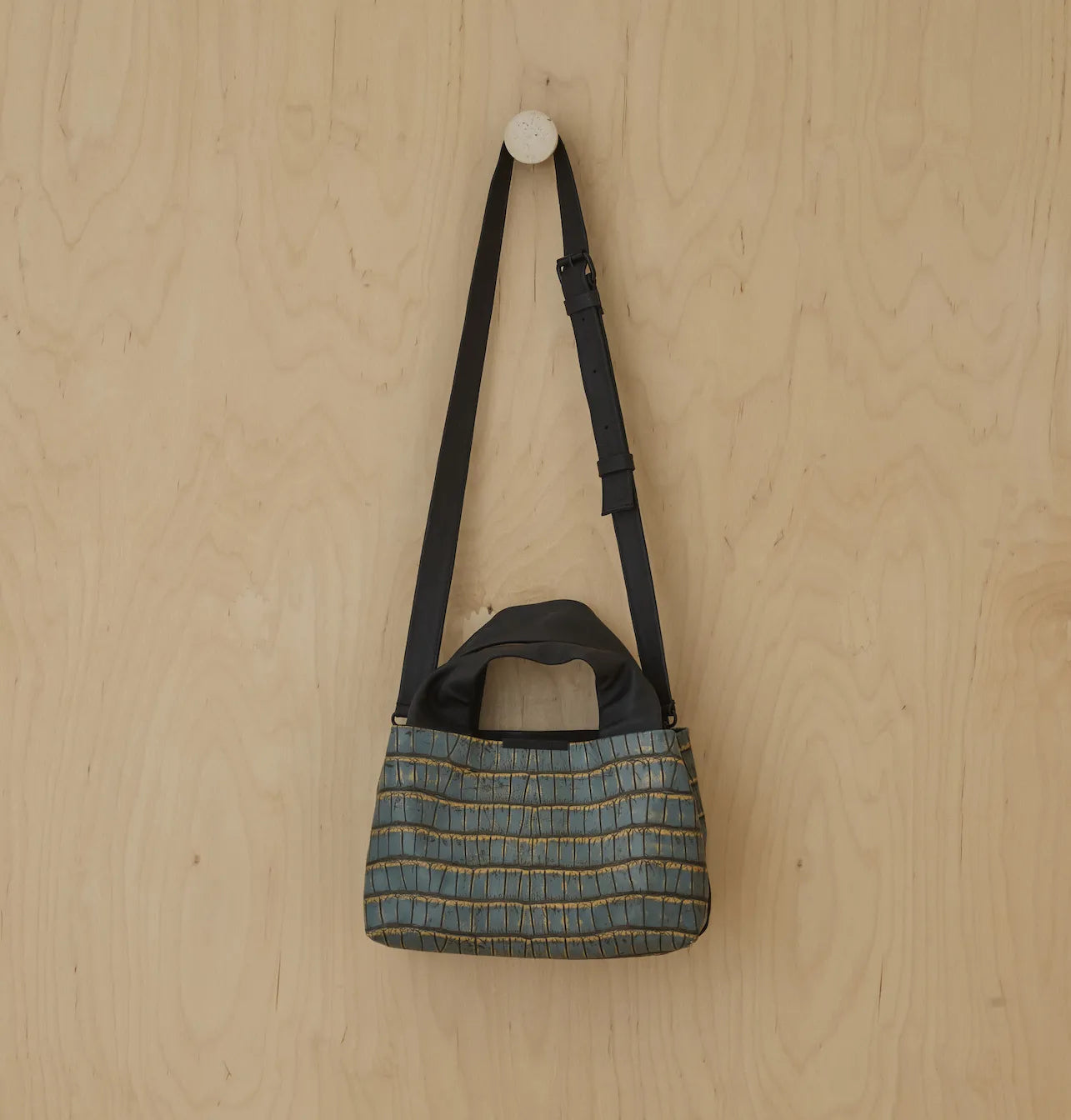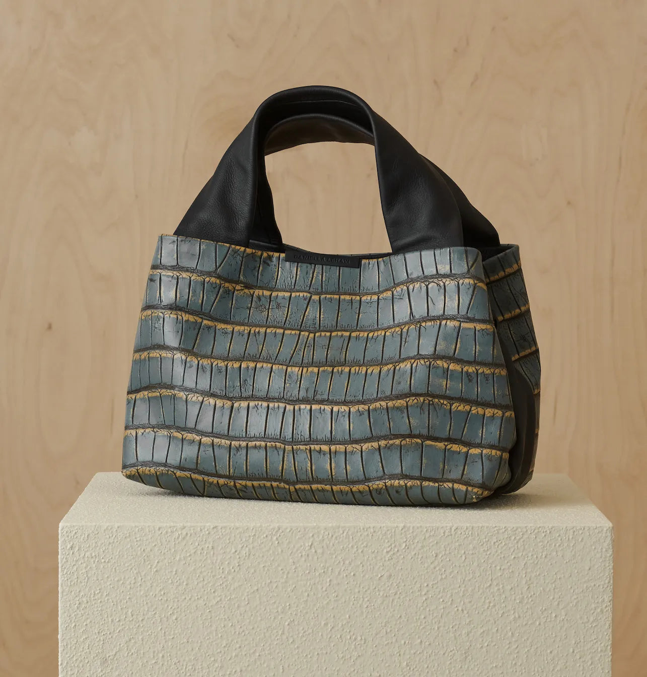 העור והטקסטורה יוצרים עומק ואופי לצורה הקלאסית, עם נוכחות שקטה וברורה.