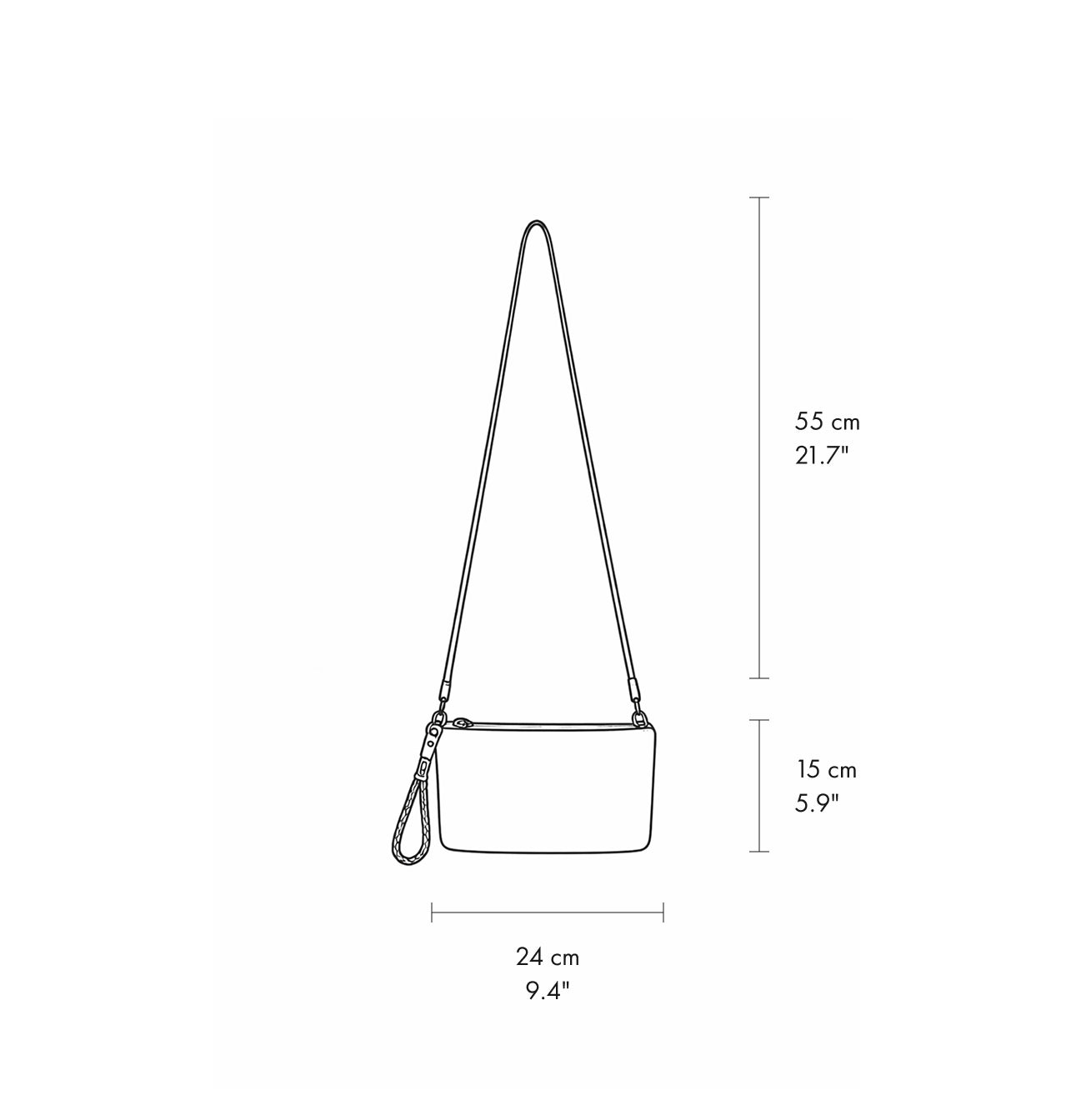 רצועת כתף ניתנת להסרה באורך: 115 ס״מ, אורך נשיאה: 55 ס"מ