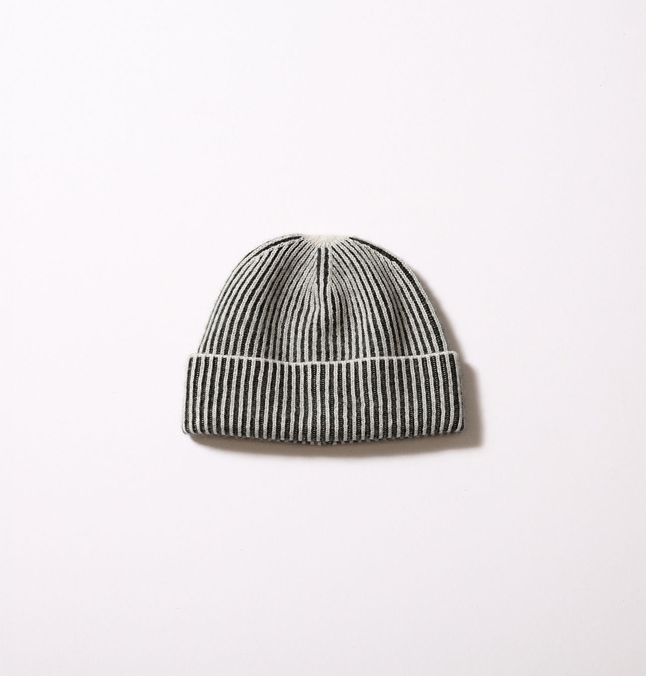 כובע סרוג של המותג Oats & Rice, עשוי מ-100% קשמיר איכותי בסריגת ריב דו-גוונית.