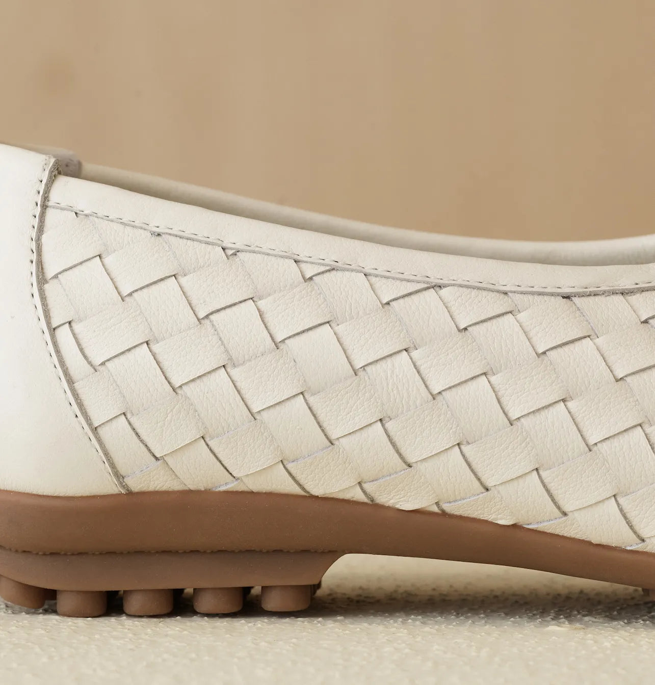 Cancun Braided Flats הן נעליים שטוחות אלגנטיות ונוחות, עשוייות עור קלוע ובעלות מראה טבעי ורך. החרטום המעוגל מדגיש קו נשי ועל זמני, המתאים לשימוש יומיומי. רפידת העור מבטיחה תחושה נעימה לאורך כל היום, וסוליית הגומי מספקת יציבות וגמישות. המבנה הפתוח מאפשר נעילה וחליצה קלה ונוחה.