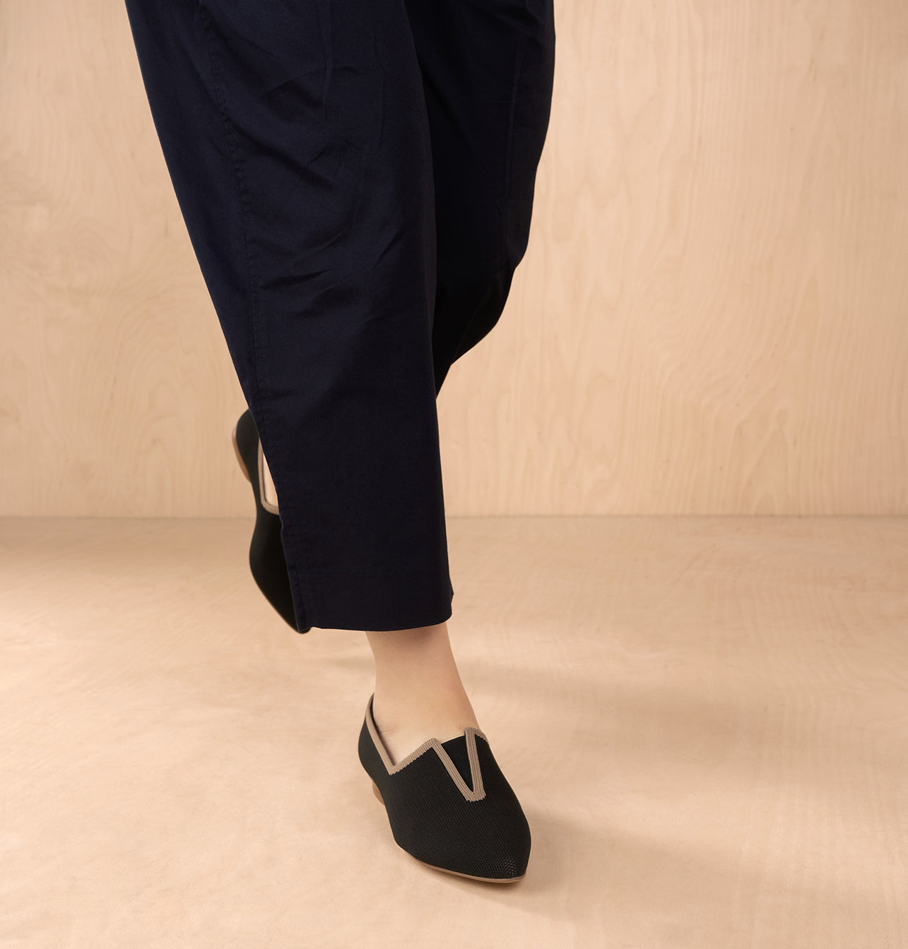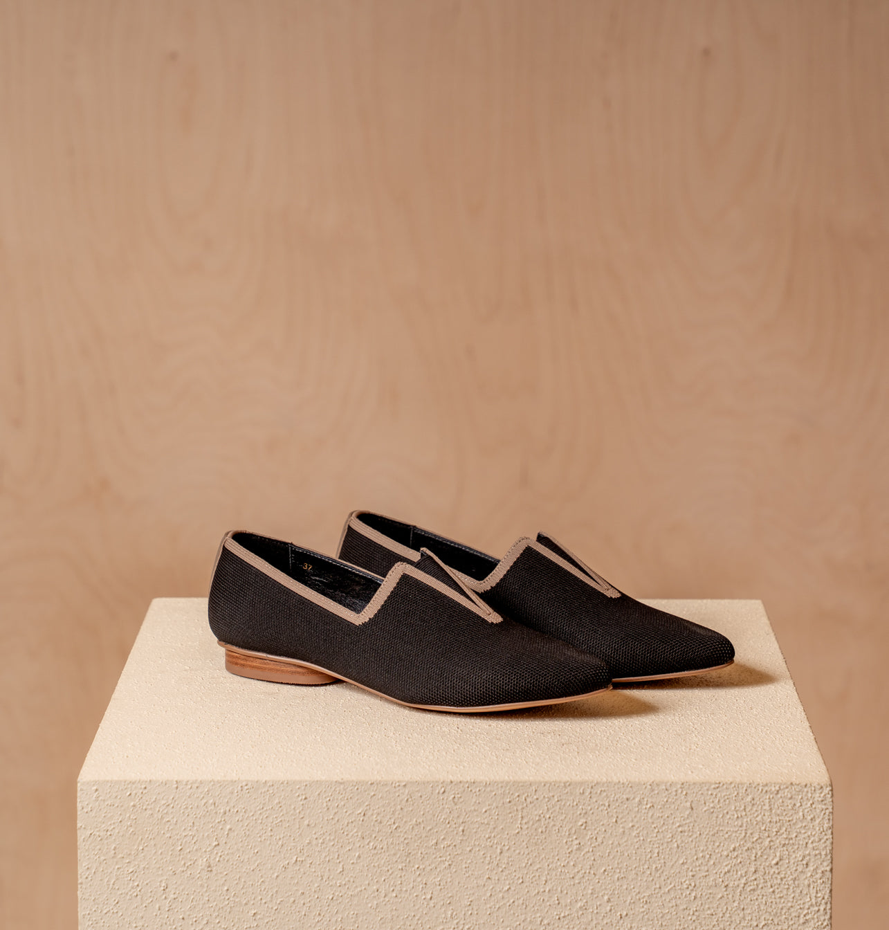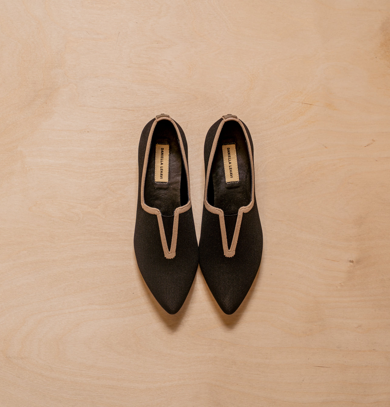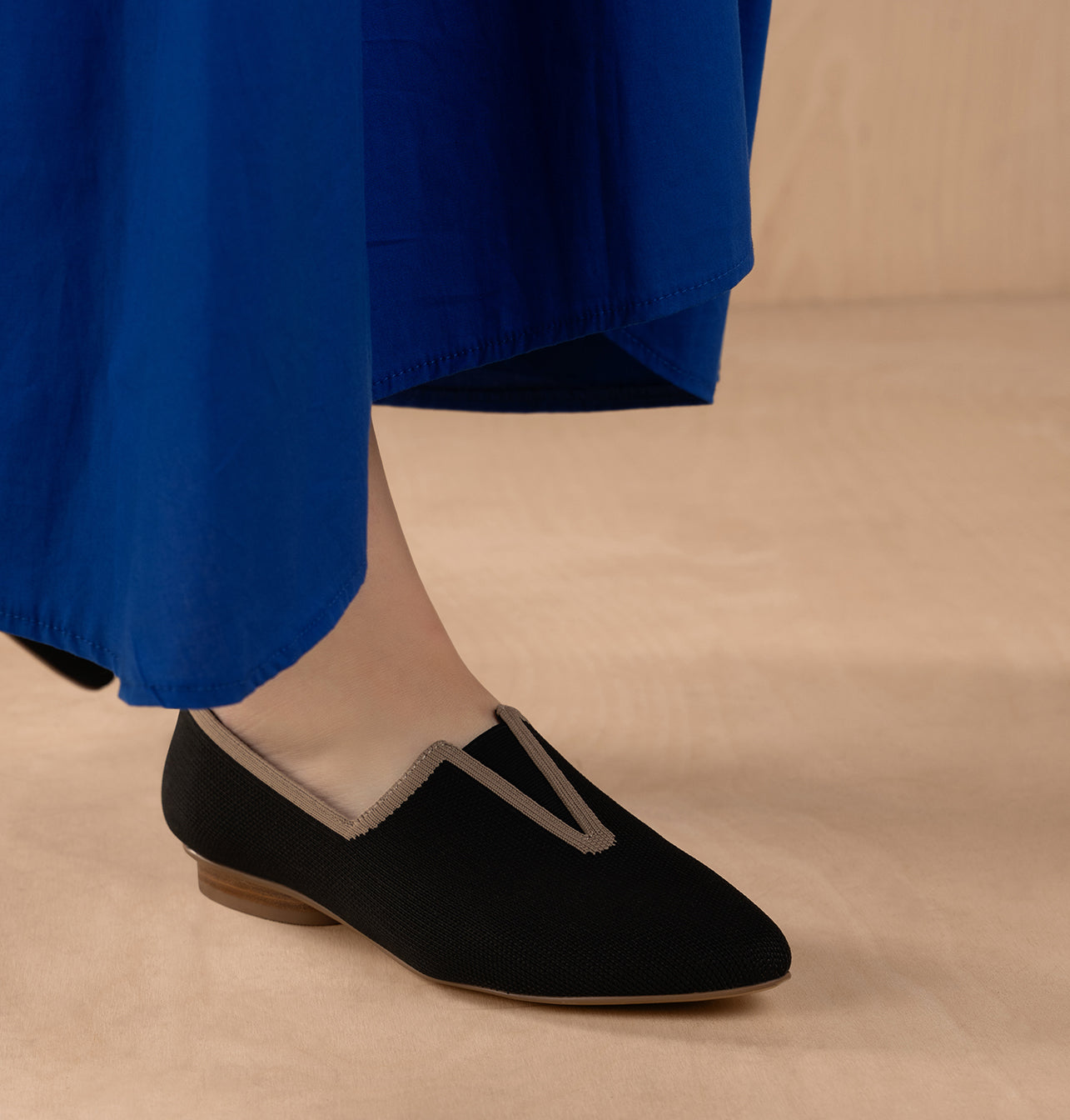 Toulouse Lily Pointed Loafers הם מוקסינים מחודדים בעיצוב מדויק ומוקפד, עשויים טקסטיל סרוג ונמתח שמחבק את כף הרגל בעדינות.