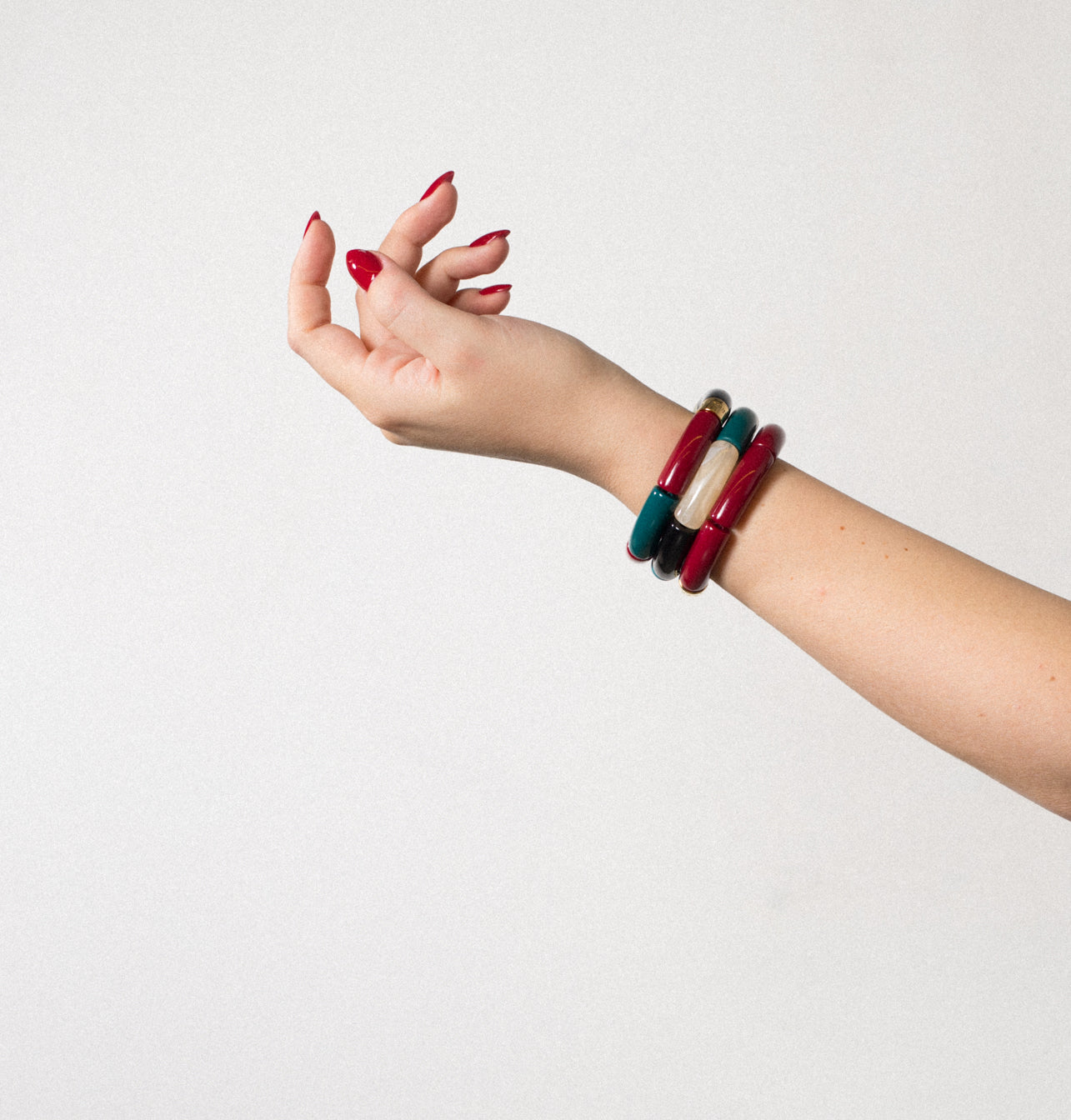הוסיפי טאץ' אלגנטי וייחודי לתלבושת שלך עם צמיד ה"רזין" של Parabaya , הכולל עיצוב חרוזים בשילובים מדויקים. כל צמיד נעשה בעבודת יד וכל חרוז הוא ייחודי, לכן ייתכנו שינויים בגווני החרוזים מצמיד אחד לאחר.