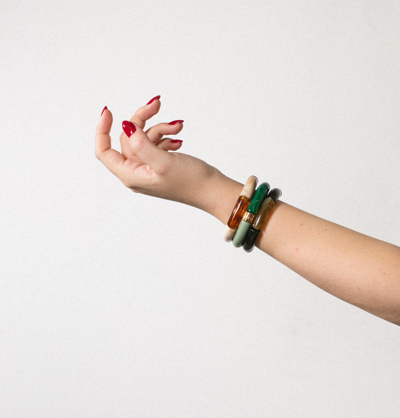 הוסיפי טאץ' אלגנטי וייחודי לתלבושת שלך עם צמיד ה"רזין" של Parabaya , הכולל עיצוב חרוזים בשילובים מדויקים. כל צמיד נעשה בעבודת יד וכל חרוז הוא ייחודי, לכן ייתכנו שינויים בגווני החרוזים מצמיד אחד לאחר.