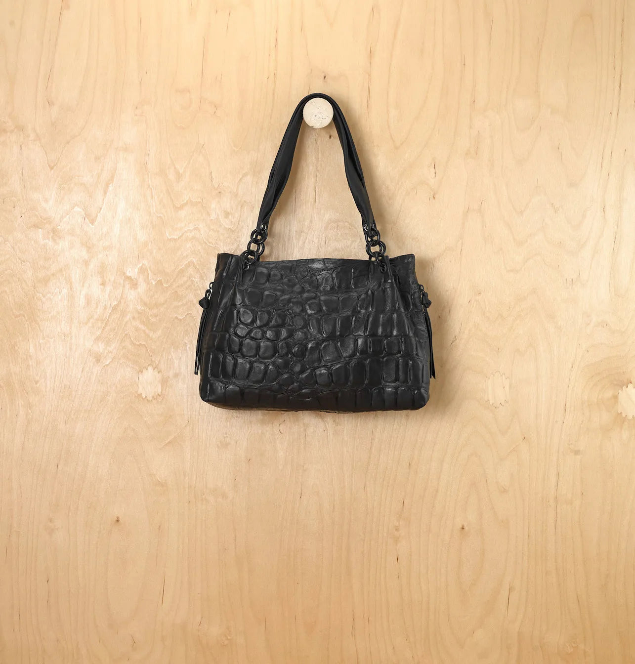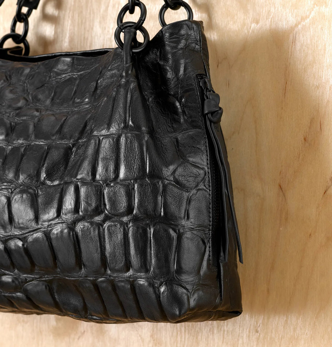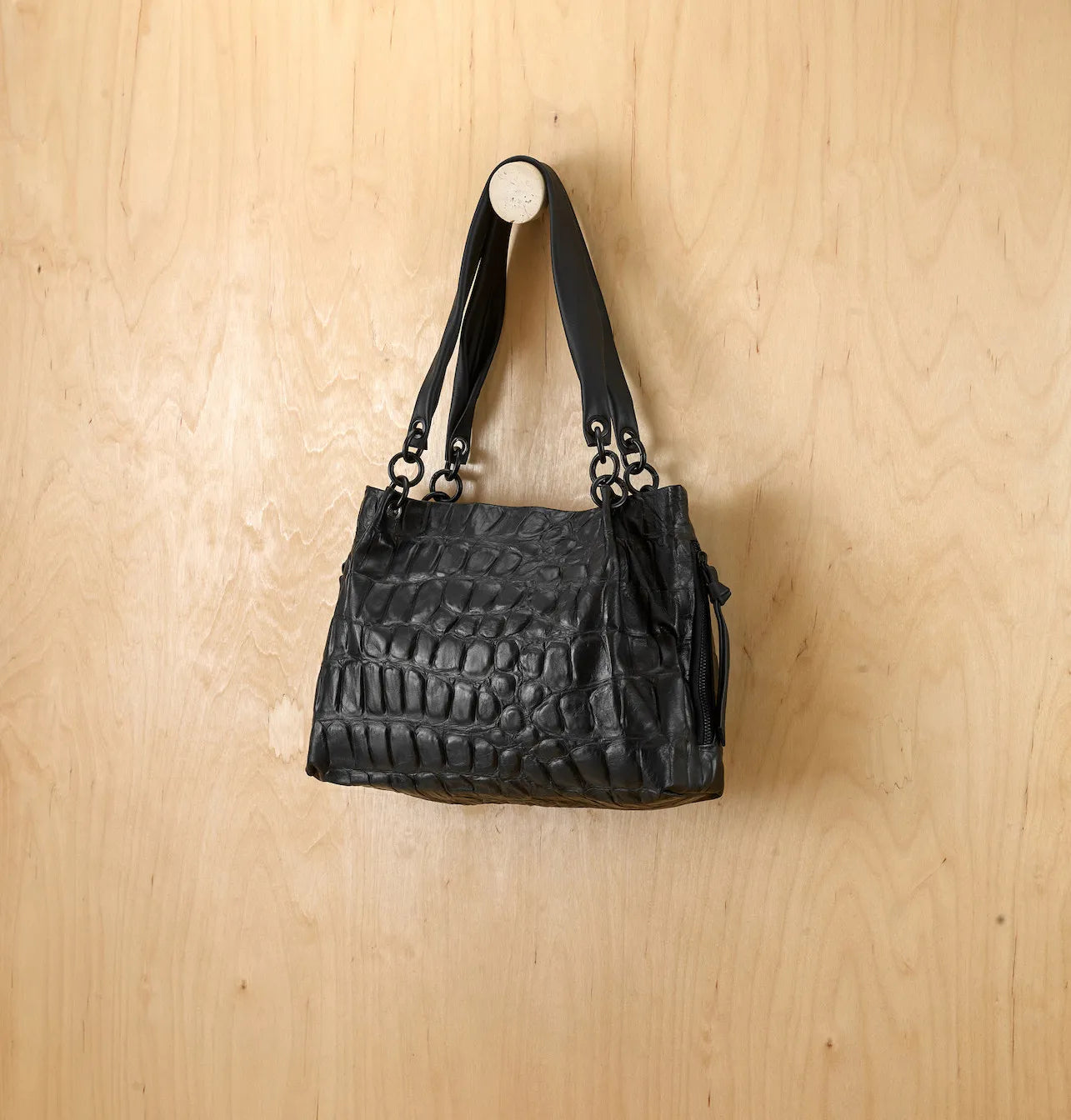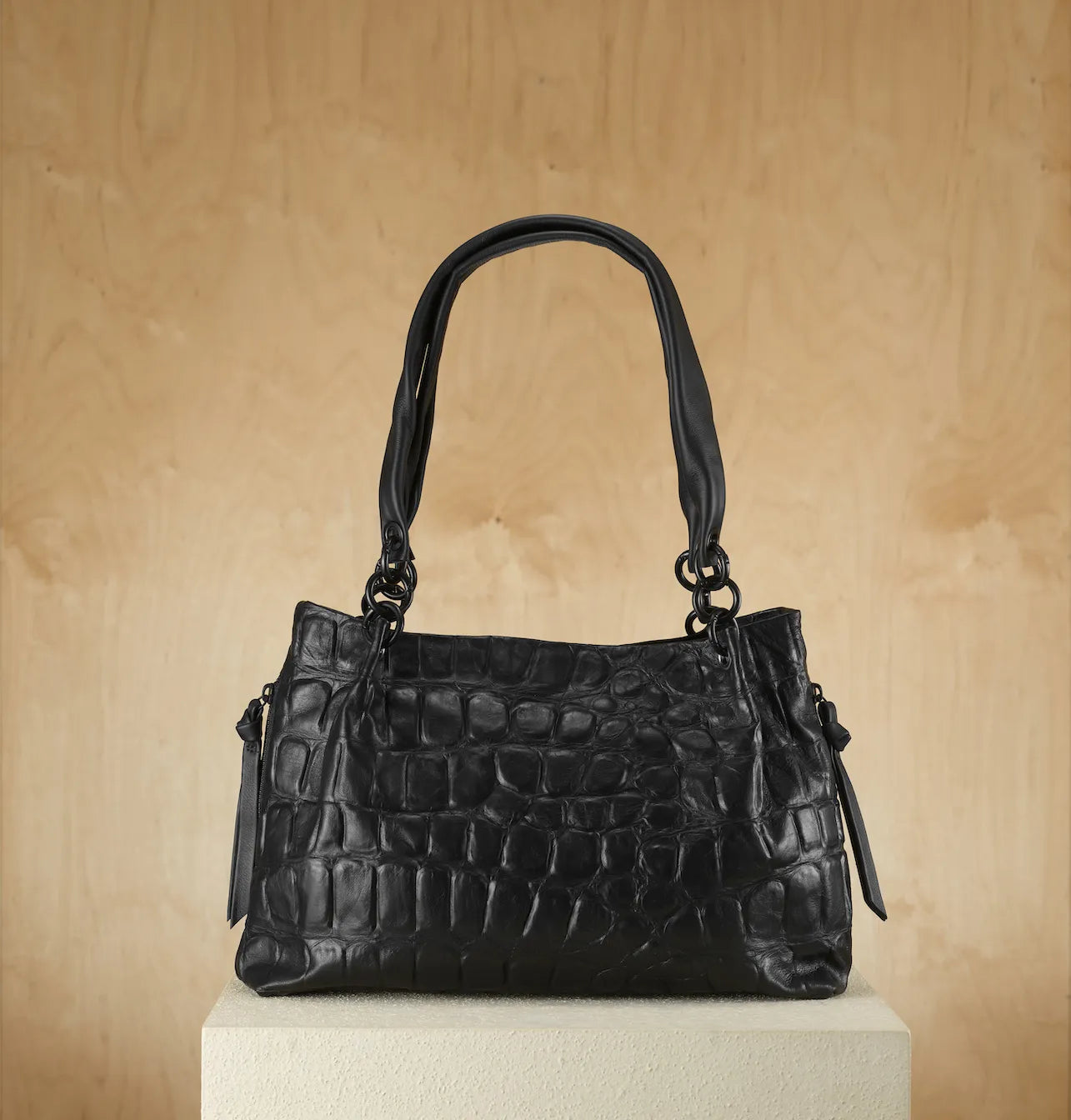 Alabama Midi Tote תיק נשיאה מעור רך ובעל טקסטורה מודגשת, עם מראה שמוסיף עומק ואופי. מבנה מדויק וקווים ברורים יוצרים איזון טבעי בין נוחות למראה מוקפד. הידיות הרחבות מונחות בנוחות על הכתף, והחלוקה הפנימית מאפשרת סדר יומיומי ברור ונעים.