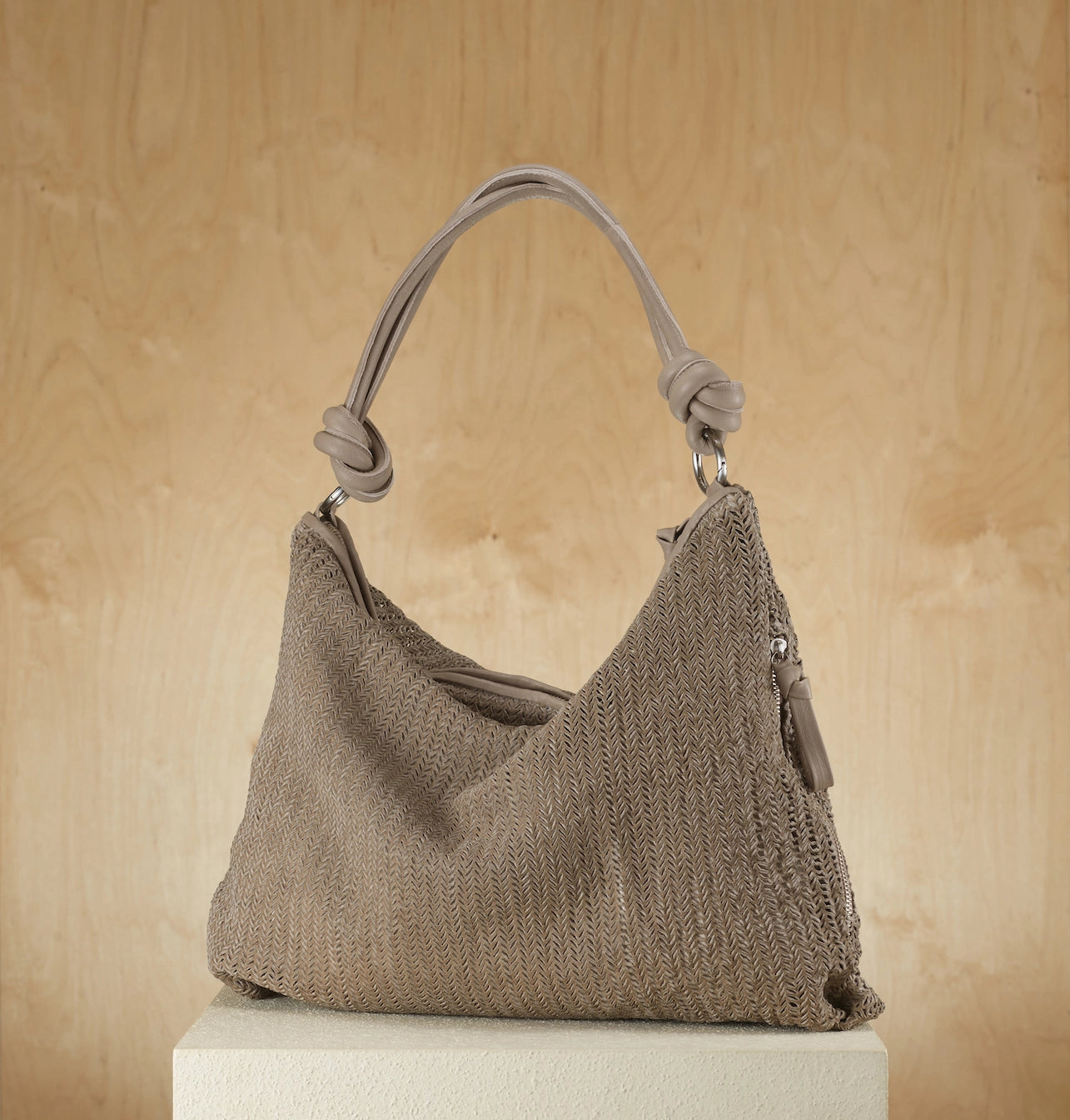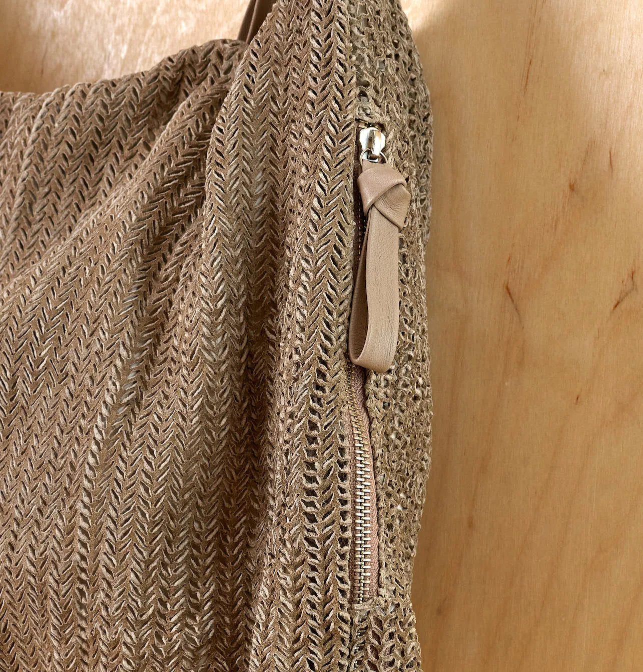 תיק נשיאה גדול בגזרה רכה ואהובה החוזרת במסגרת קולקציה מצומצמת ובצבעים ייחודיים שנבחרו במיוחד. בסיס רחב וצורה שמתכנסת בעדינות כלפי מעלה יוצרים מראה טבעי ונינוח. העור המחורר מעניק תחושה נושמת וטקסטורה שמכניסה תנועה ועדינות למראה הכללי. הנפח הנדיב והמבנה הרך הופכים אותו לפריט יומיומי נוח ושימושי, שממשיך להרגיש נכון גם לעונות הבאות.