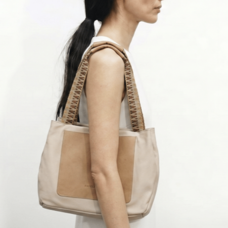Lima Tote Bag תיק נשיאה קלאסי עשוי עור כבשים רך והוא ניצחון של פרקטיות וסגנון. בעזרת תשומת הלב לפרטים הקטנים, הוא המלווה המושלם ליום-יום. הצורה הקיצית הפתוחה שלו, יחד עם הרצועות הבד הרקומות בסגנון גיאומטרי, מוסיפה תחכום ואלגנטיות לכל בגד - תיק קל לנשיאה שתרצי לקחת לכל מקום.