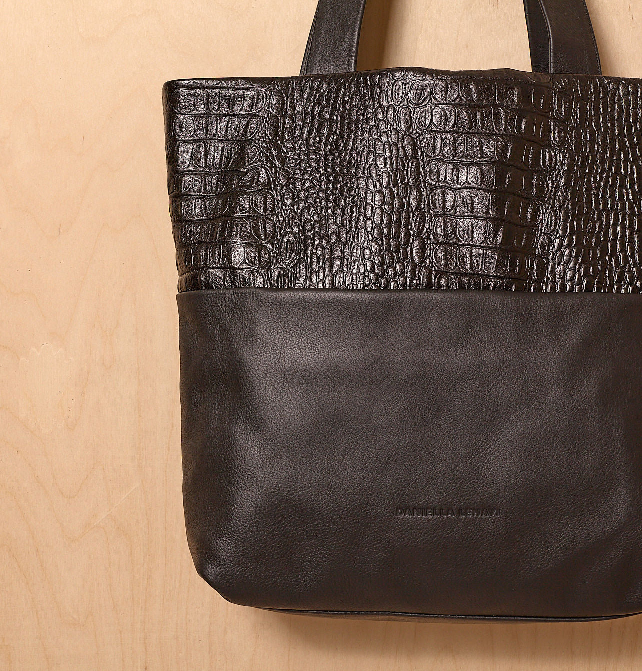 Austin Tote Bag הוא תיק סל קלאסי ומאורך, תיק שמתאים ללפטופ 13 אינץ׳ ולנשיאה על הכתף. התיק הוא גרסה חדשה לדגם אריאלה - תיק מצליח של כל הזמנים, הפעם מגיע גם עם תא חיצוני שמוסיף לו גם טוויסט פונקציונלי וגם מראה חדש שמשלב שתי טקסטורות - כבשים וקרוקו מכובס.