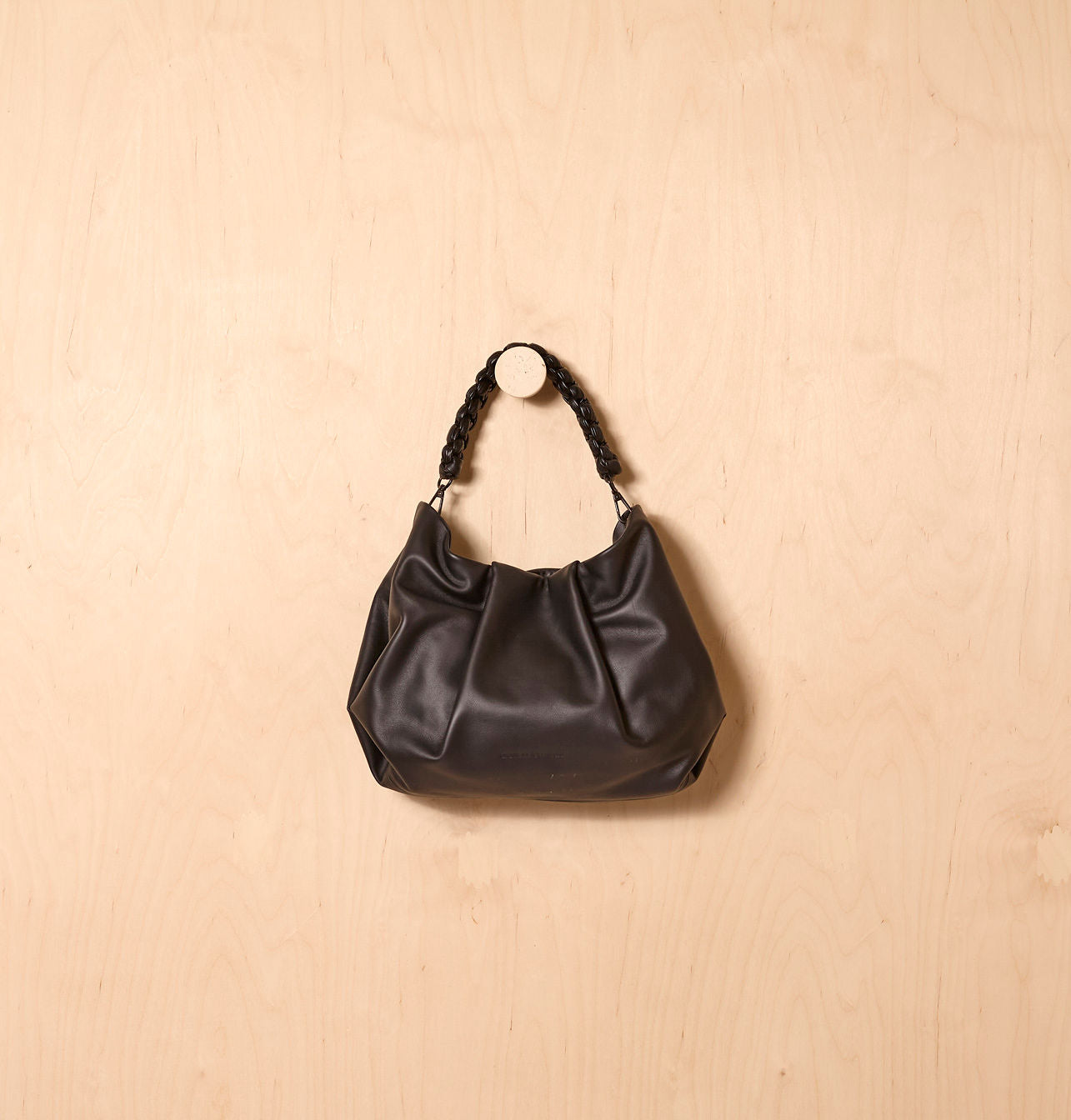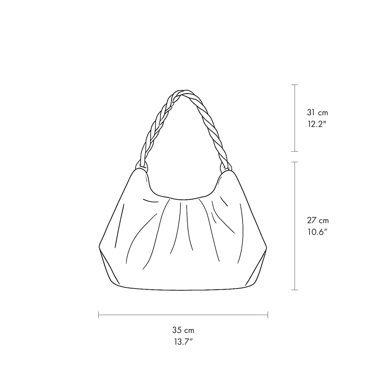 Bali Braided Maxi Bag הוא תיק נשיאה גדול ומרווח, בעל מבנה רך עם קפלי עור שמוסיפים עניין ונפח עדין. עשוי 100% עור איטלקי רך, עם רצועת כתף קלועה שמכניסה טקסטורה ייחודית ונגיעה אמנותית.