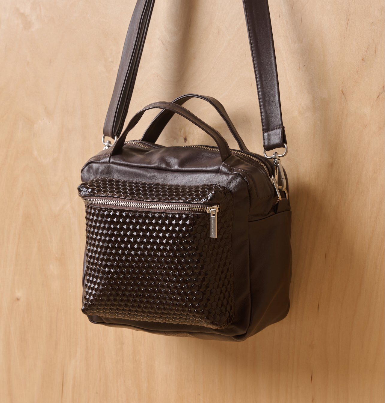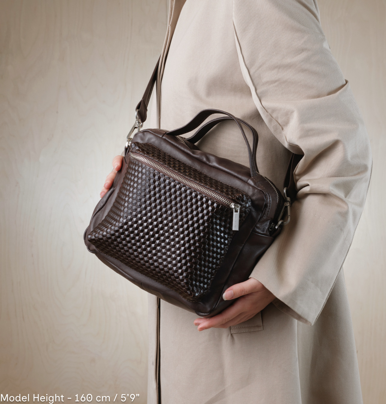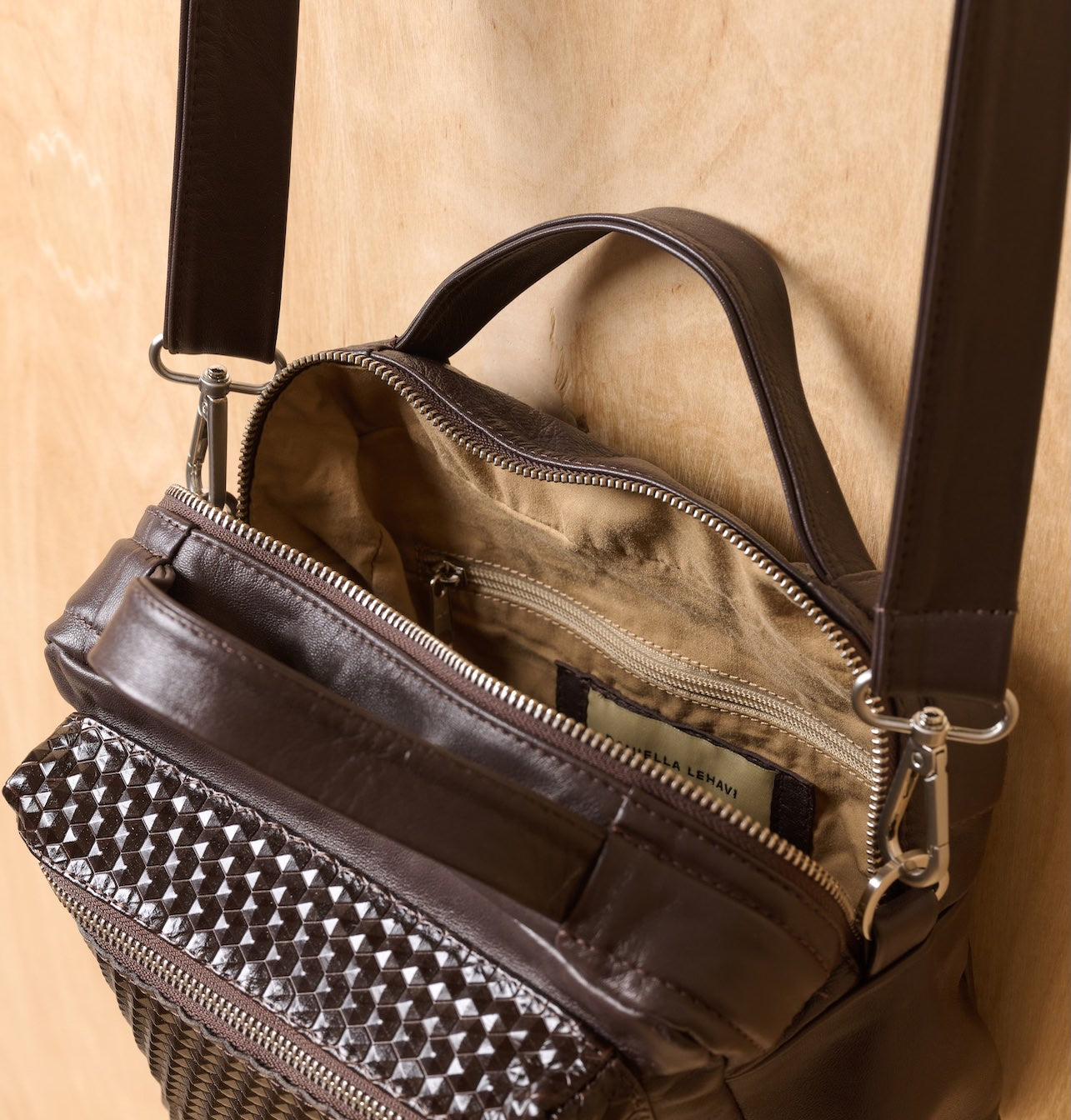 Madison Crossbody תיק בעיצוב קופסתי רך, מורכב משילוב של שני סוגי עורות היוצרים מפגש טבעי של טקסטורה ואור. המבנה המאוזן ורצועת הנשיאה המתכווננת מעניקים גמישות ופתרון מדויק לשגרה משתנה.