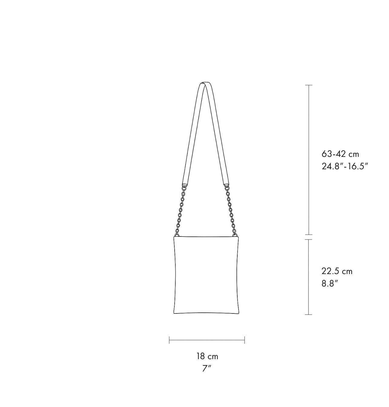 - מידות: רוחב- 18 ס"מ, גובה- 22.5 ס"מ, אורך נשיאה: 42-63 ס"מ