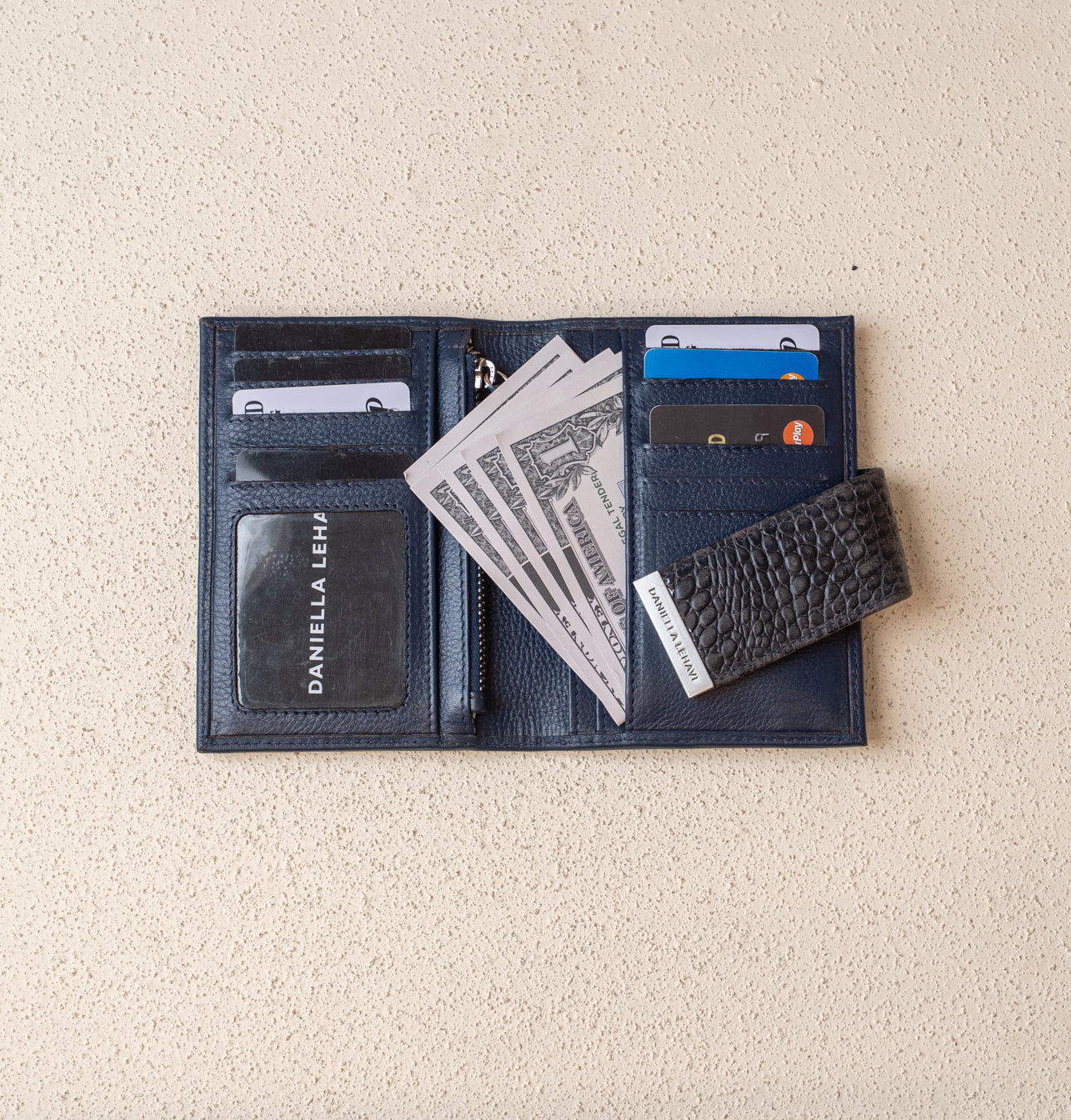 - כיס עם רוכסן בגב הארנק
