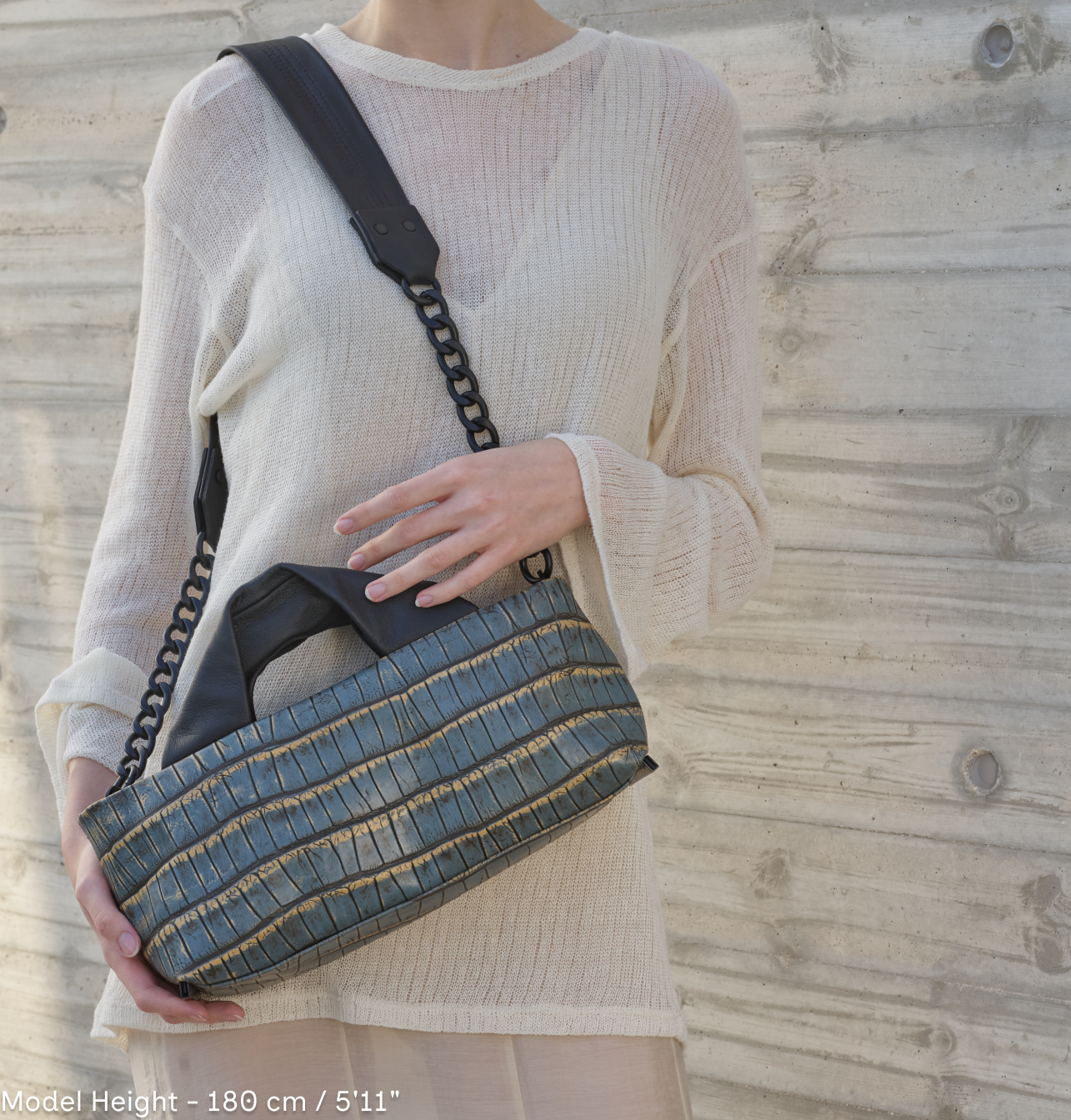 Alexa Landscape תיק במבנה מלבני בעל פרופורציות מדויקות ומראה אלגנטי. רצועת כתף וידיות אחיזה מאפשרות גמישות בין נשיאה ביד או על הכתף. עיצוב פשוט אך נוכח, המשלב דיוק ורוך.