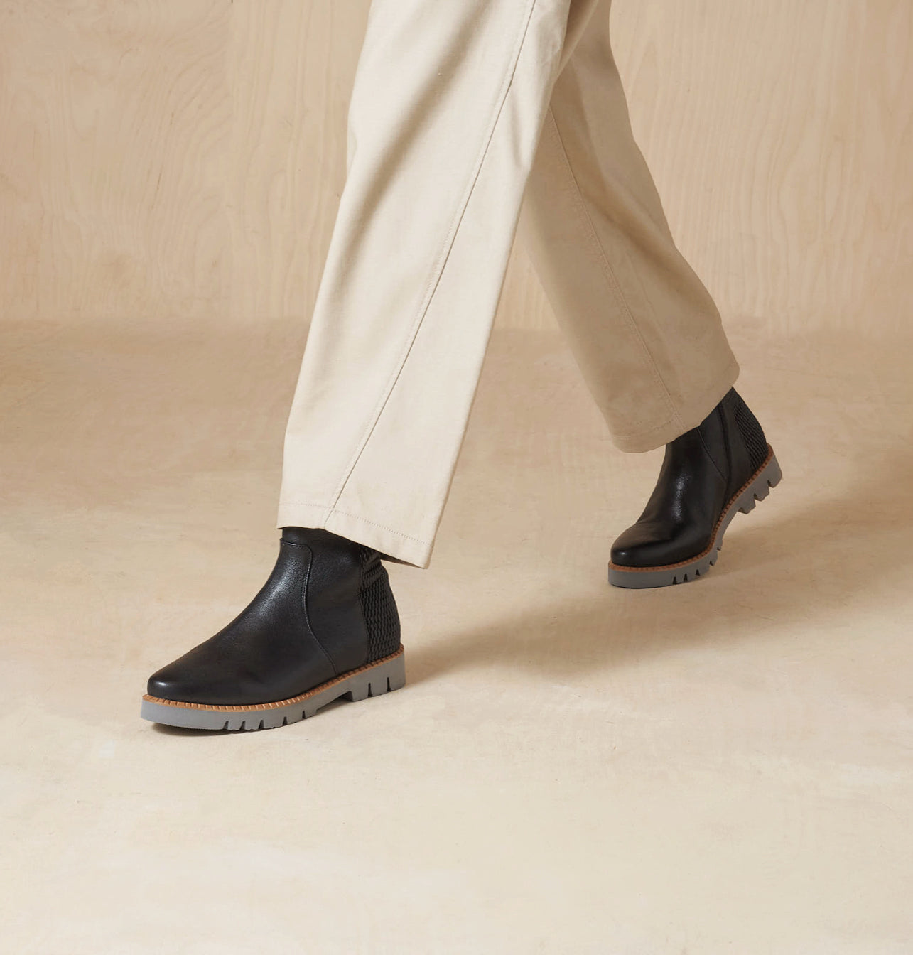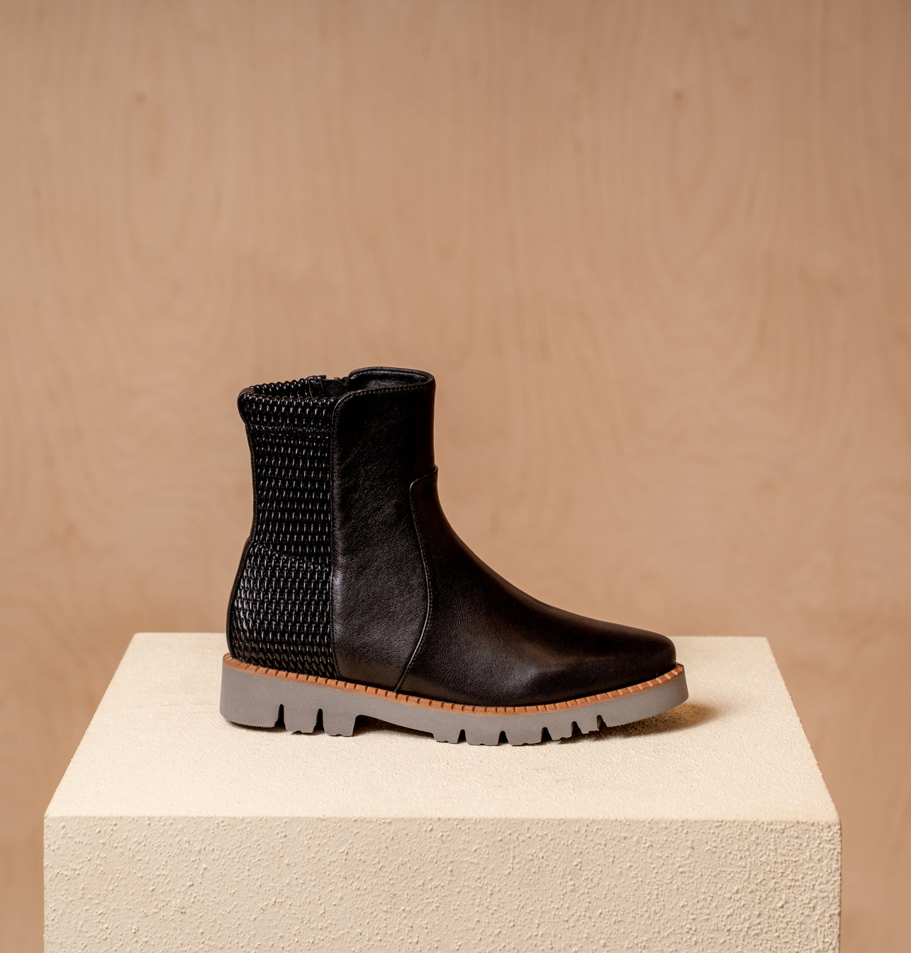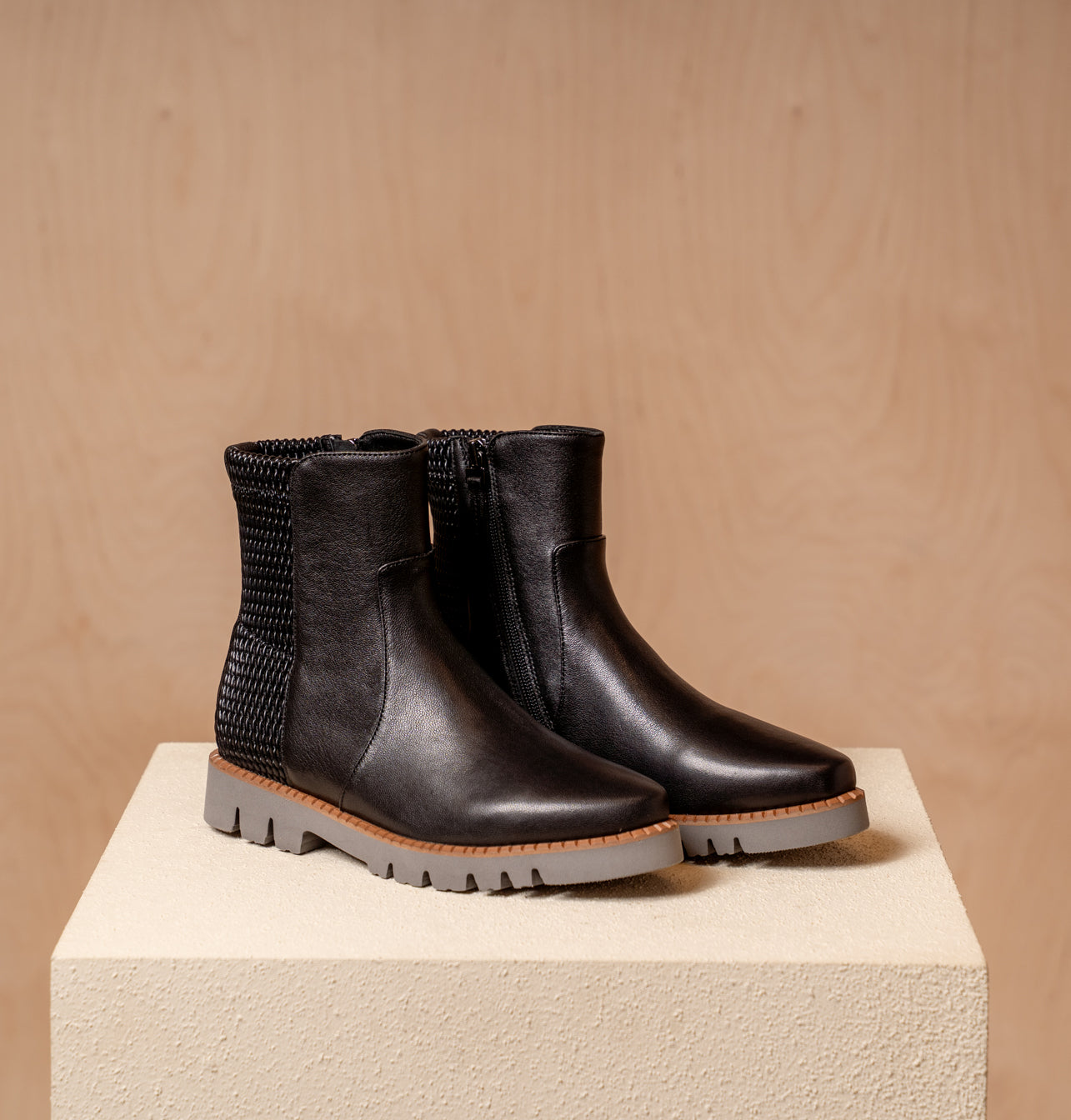 Austin Ankle Boot הם מגפוני קרסול בקו מינימליסטי ומדויק, עשויים שילוב של עור ולייקרה רכה שמעניקים גמישות והתאמה נוחה לרגל.