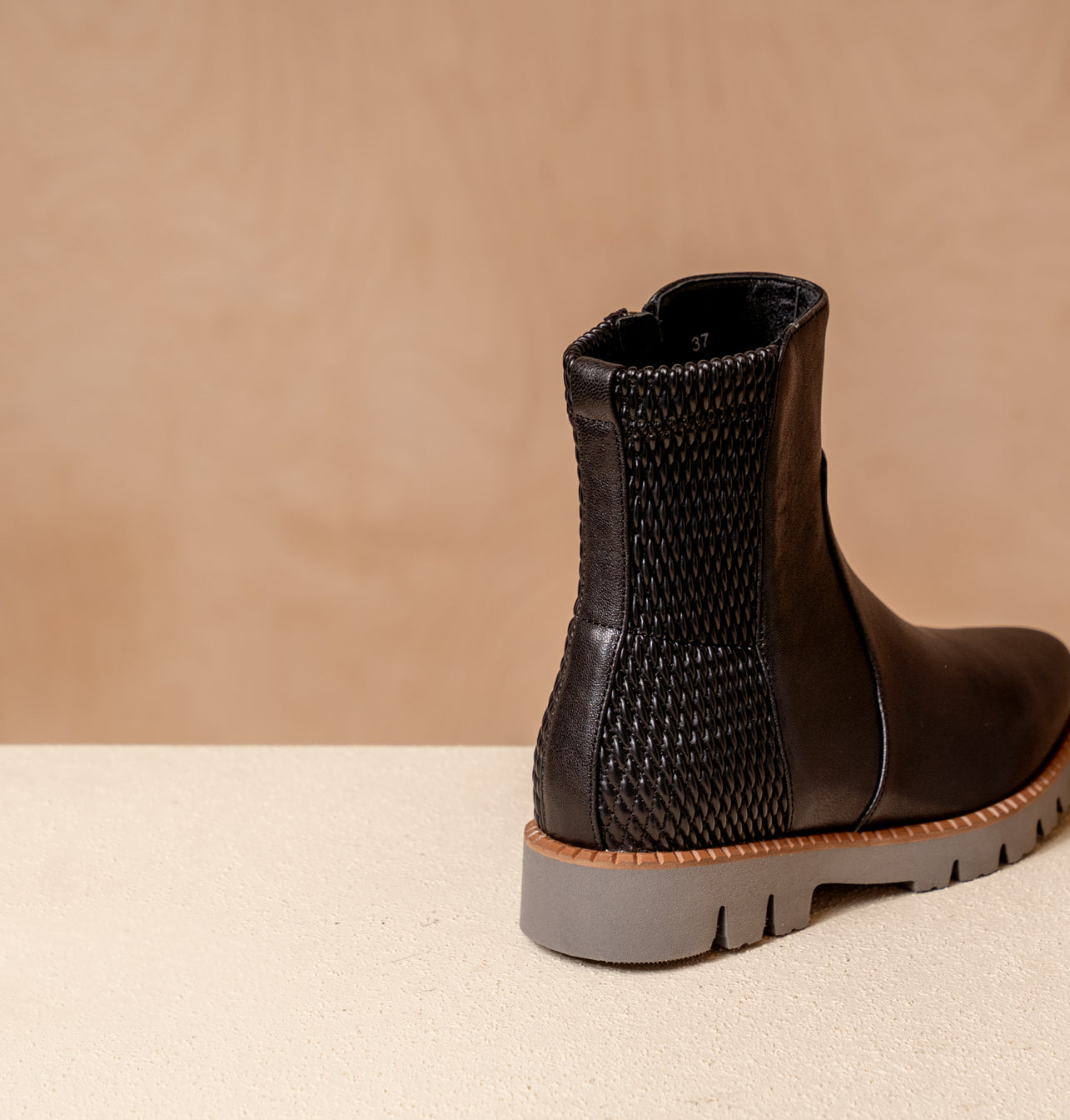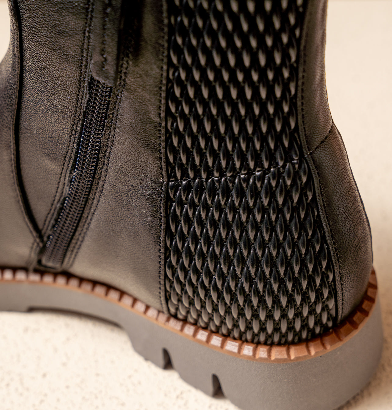 הרוכסן הצדי מאפשר נעילה וחליצה קלות, והעקב הנמוך שומר על יציבות מבלי לוותר על מראה נשי ומוקפד. אלו מגפונים שנכנסים בקלות מתחת לג'ינס או משתלבים עם מכנסיים ישרים – פריט יומיומי עם נוכחות שקטה.