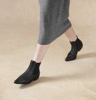 סוליית הגומי הגמישה עם העקב הנמוך מוסיפים יציבות ותחושה רכה בכל צעד. מגפונים שמתאימים לשילוב עם ג'ינס בגובה הקרסול שמאפשר להם לבלוט, וגם עם שמלות או חצאיות מידי – הניגוד בין הבד הרך לקו המחודד יוצר מראה מאוזן ומדויק.