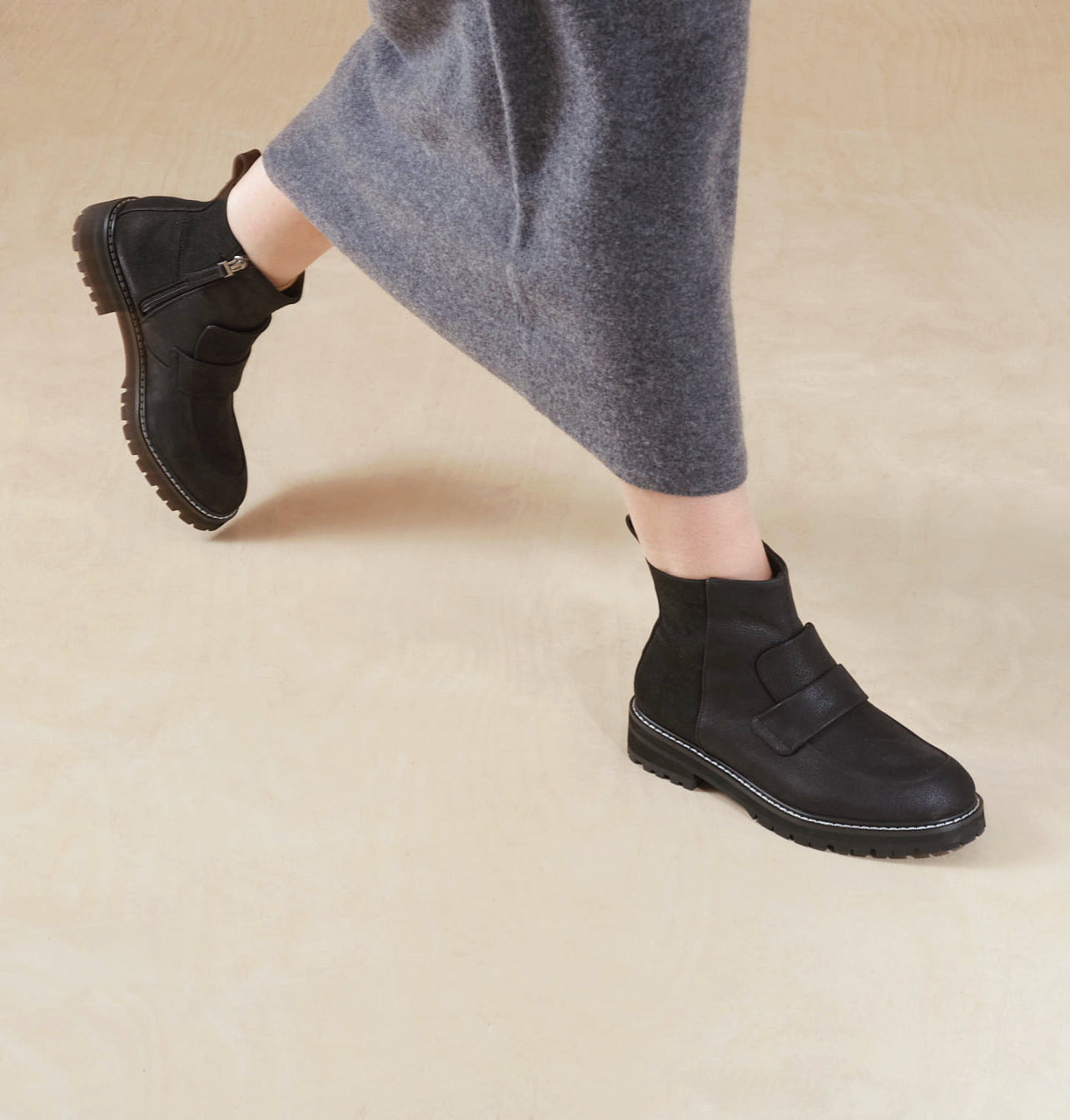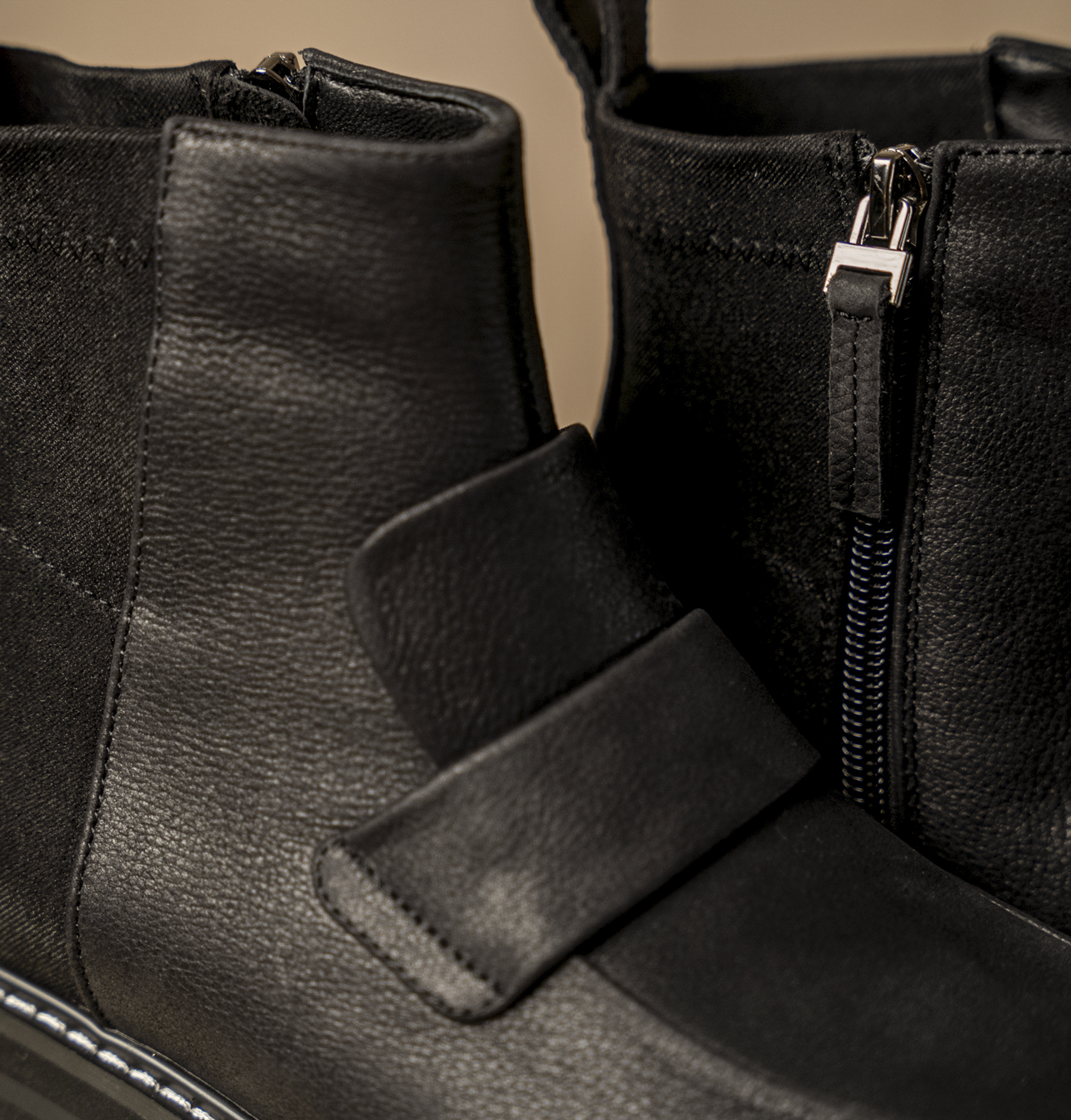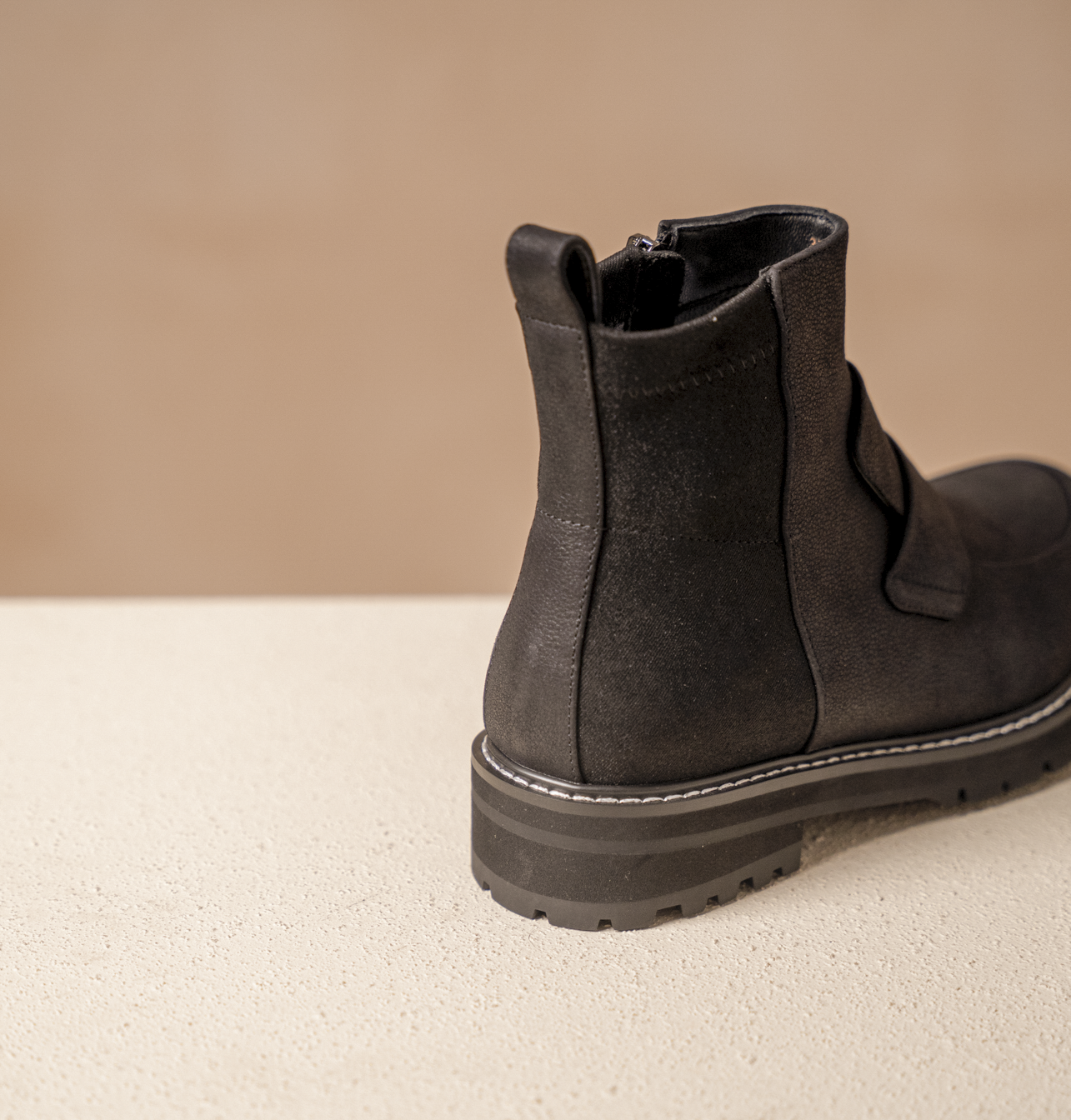 הרוכסן בצד מאפשר נעילה וחליצה נוחות, והסוליה בסגנון טרקטור עם עקב שטוח שומרת על יציבות וגמישות גם ביומיום אינטנסיבי.