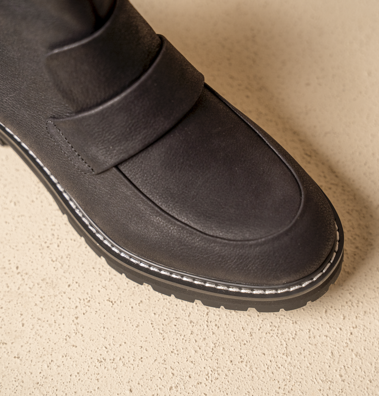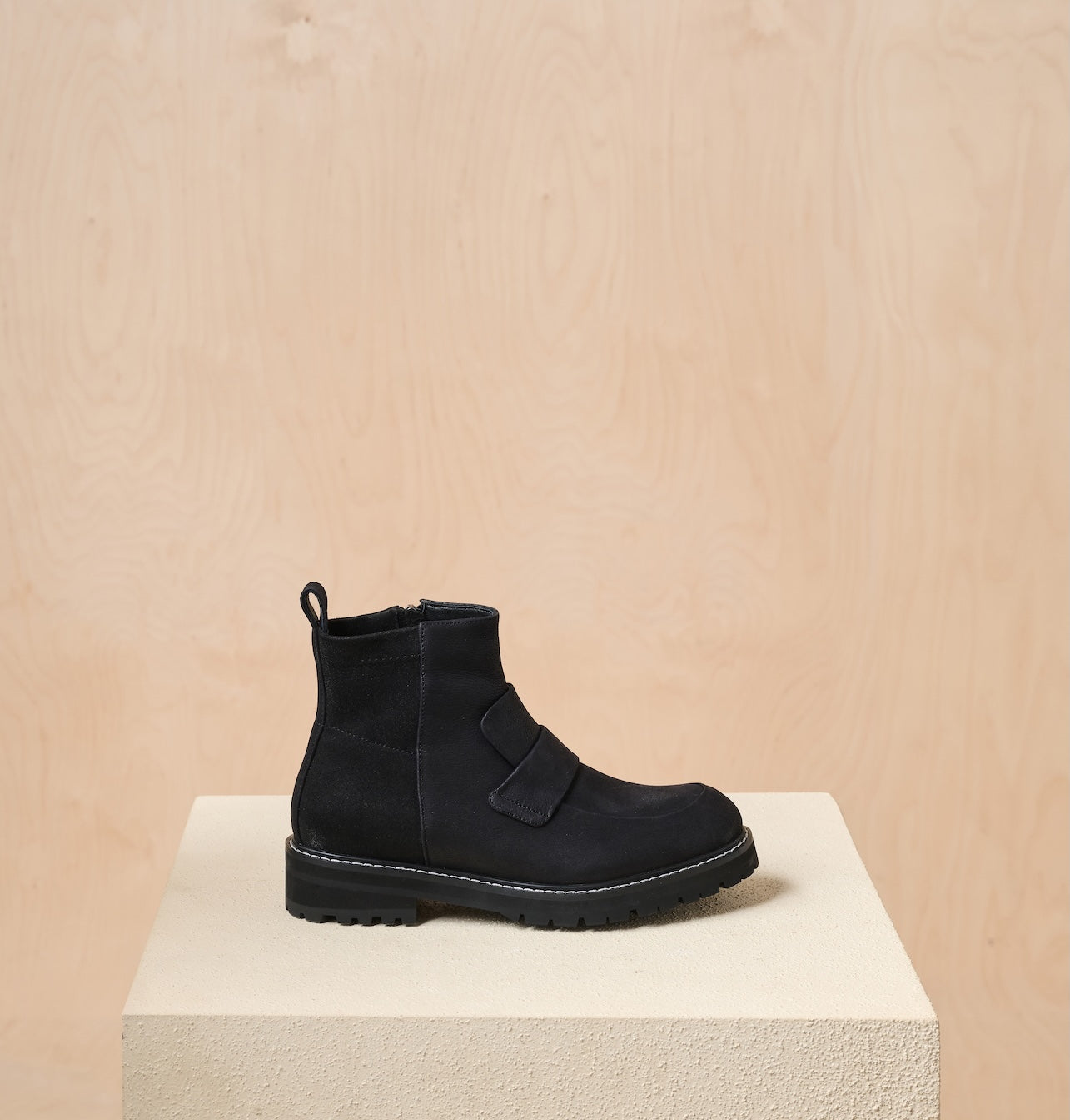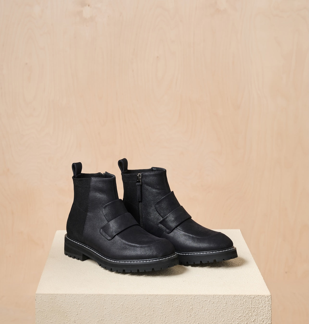 הרוכסן בצד מאפשר נעילה וחליצה נוחות, והסוליה בסגנון טרקטור עם עקב שטוח שומרת על יציבות וגמישות גם ביומיום אינטנסיבי.