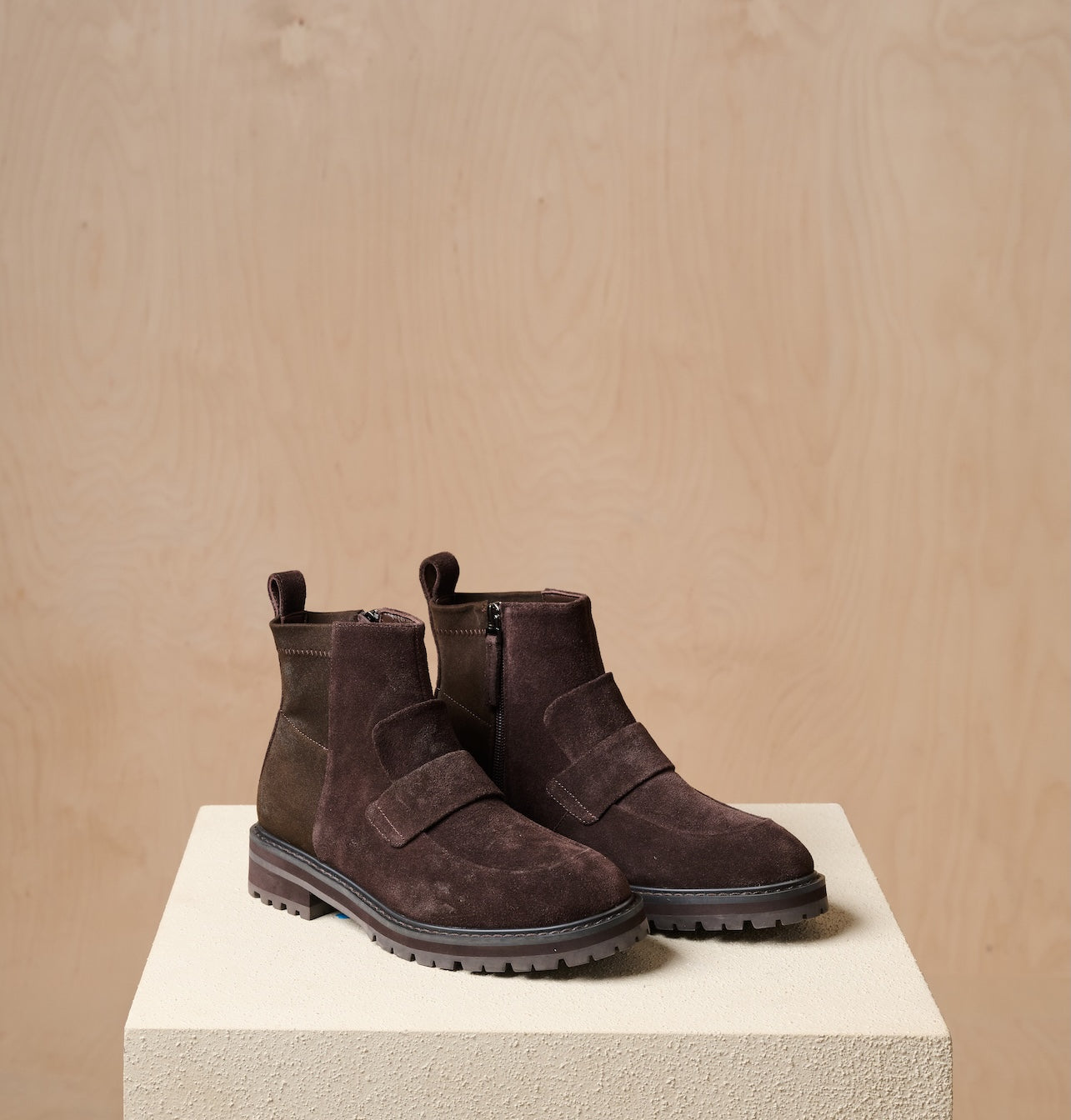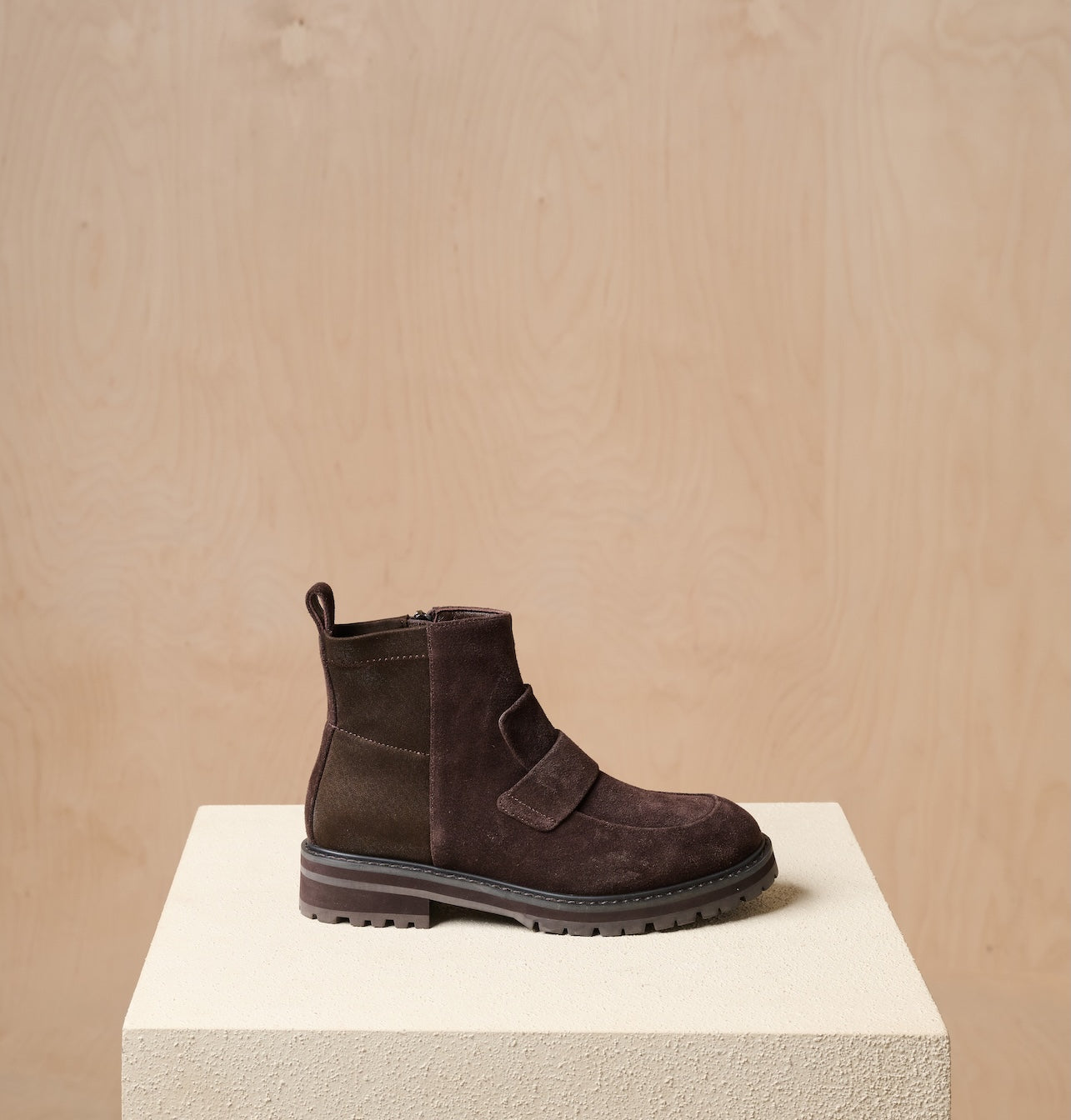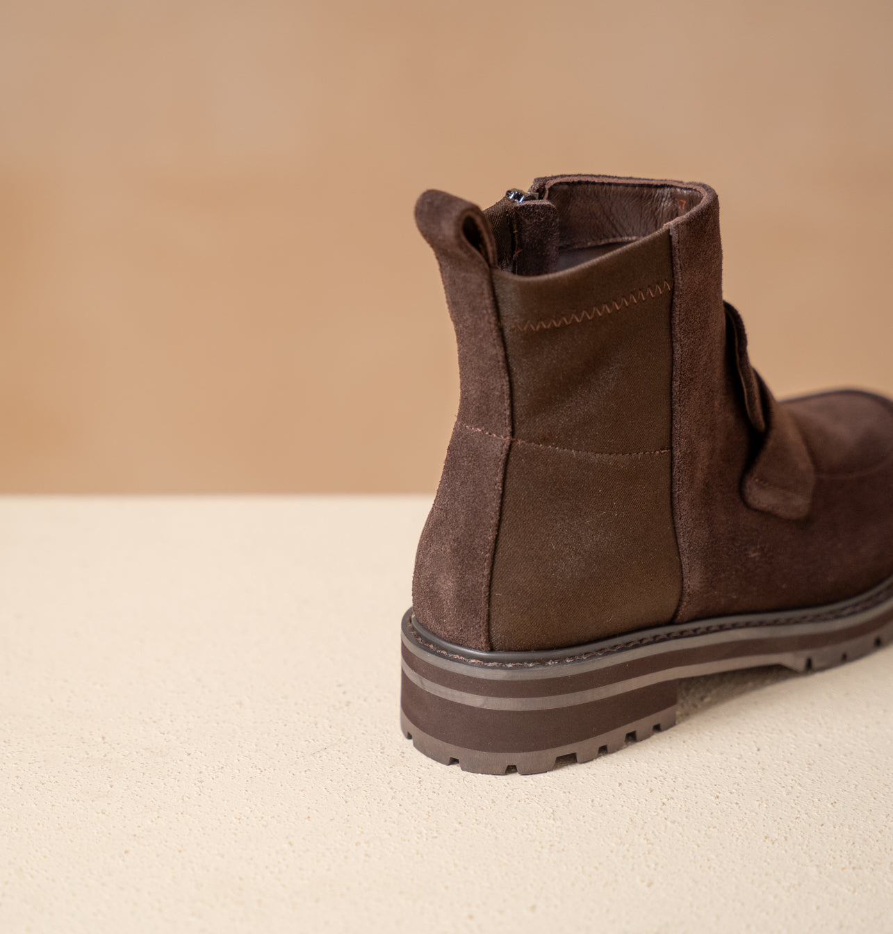 הרוכסן בצד מאפשר נעילה וחליצה נוחות, והסוליה בסגנון טרקטור עם עקב שטוח שומרת על יציבות וגמישות גם ביומיום אינטנסיבי.