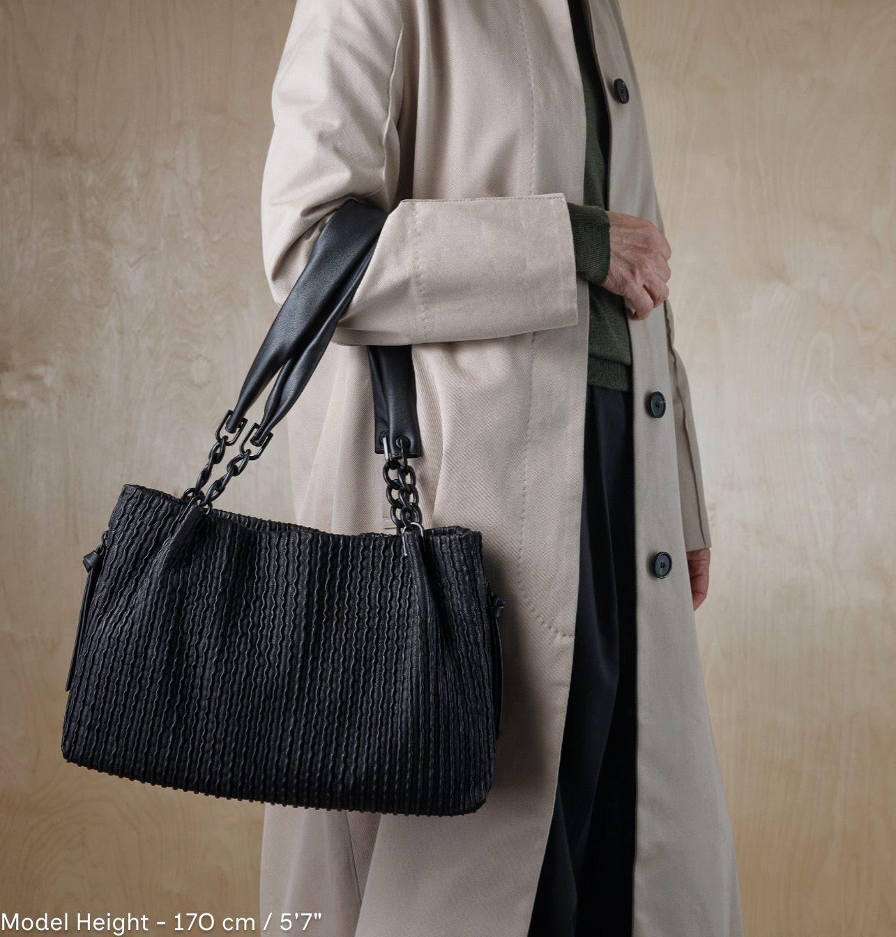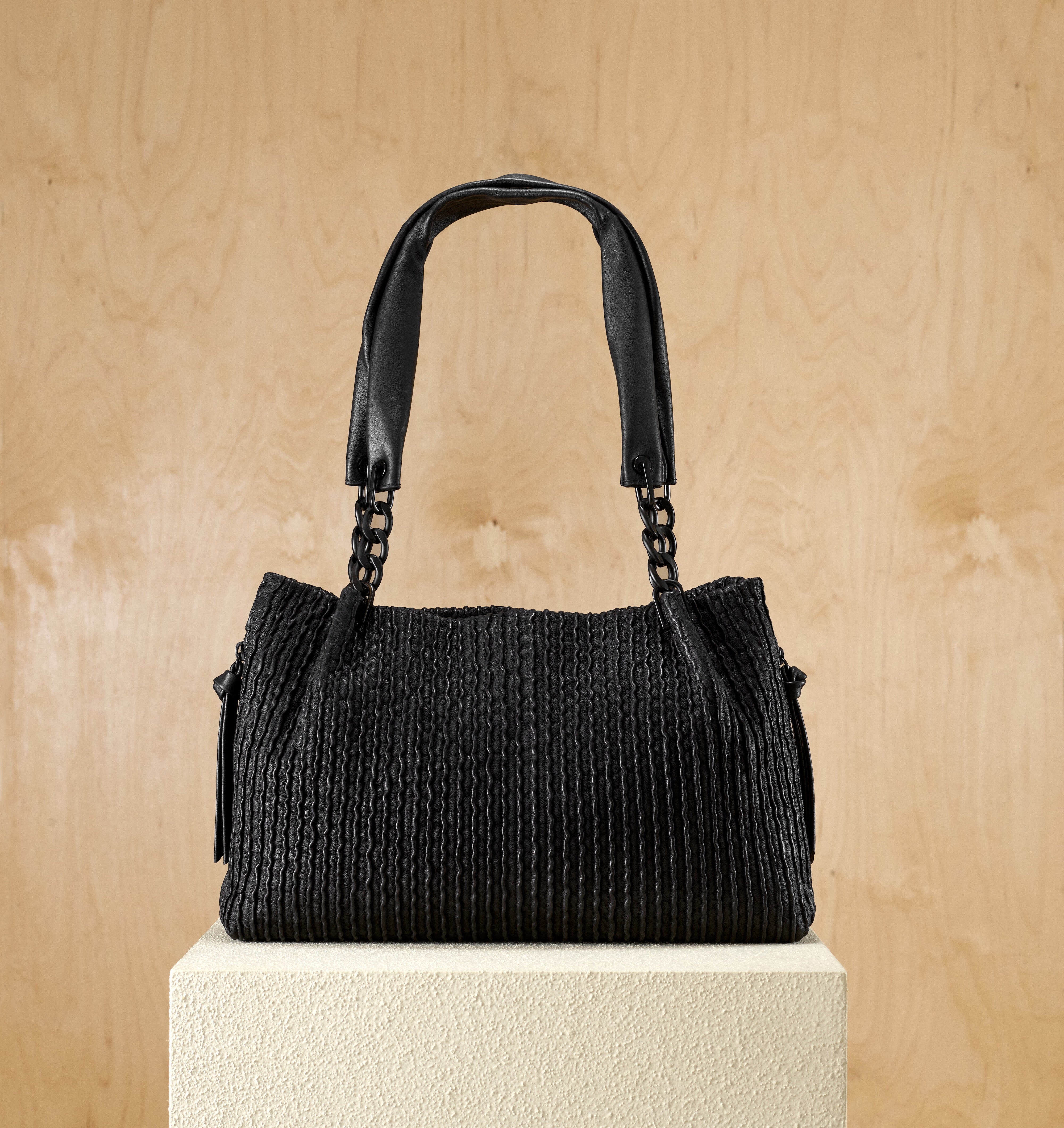 Alabama Midi Tote הוא תיק נשיאה רך שמונח על הגוף בתחושה עוטפת, בעל צורה נקייה שנשארת מדויקת גם בשימוש יומיומי. הידיות הרחבות מעניקות לו ישיבה טבעית על הכתף ומוסיפות תחושה מאוזנת ונעימה במגע. התיק בעל חלוקה נכונה של תאים, שמייצרת סדר אינטואיטיבי ונינוח לאורך היום.