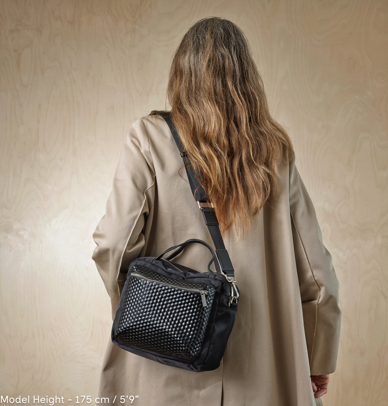 Madison Crossbody תיק בעיצוב קופסתי רך, מורכב משילוב של שני סוגי עורות היוצרים מפגש טבעי של טקסטורה ואור. המבנה המאוזן ורצועת הנשיאה המתכווננת מעניקים גמישות ופתרון מדויק לשגרה משתנה.