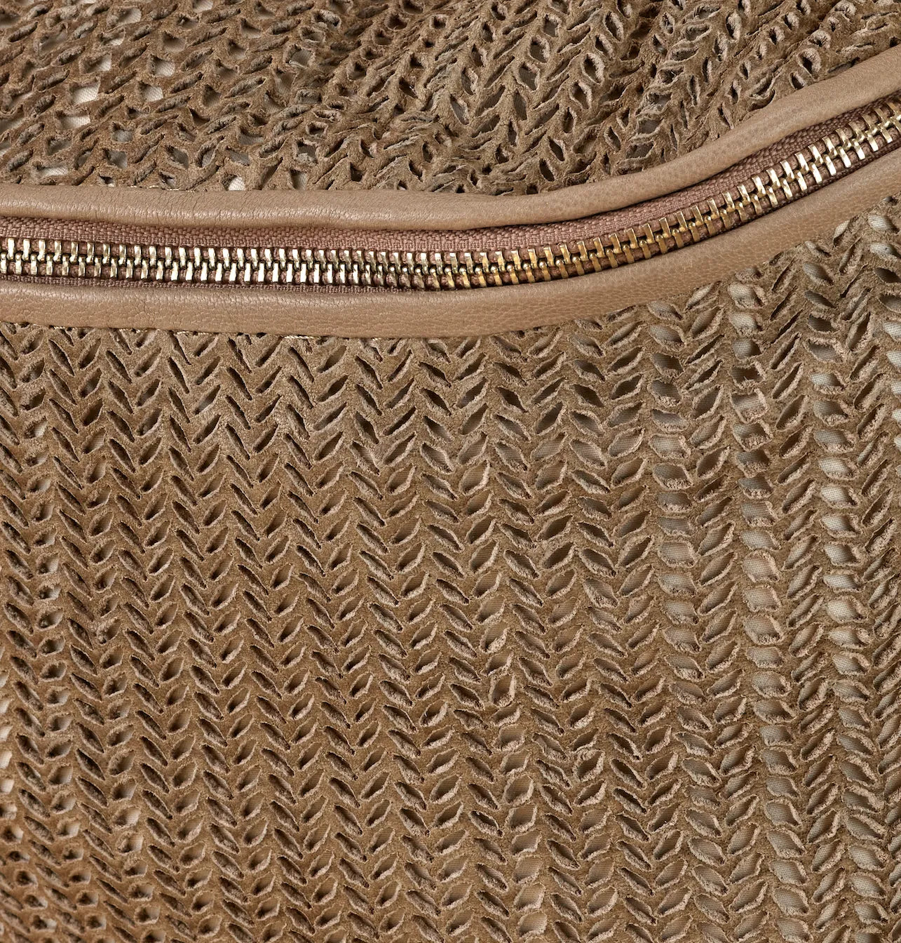תיק עשוי עור מחורר עם טקסטורה חיה ונושמת, שמוסיפה עומק ותנועה למראה. המבנה הרך יושב קרוב לגוף ונשאר נעים גם בתנועה, והגודל המדויק מאפשר לשאת את הפריטים החיוניים בצורה נוחה. גזרה מוכרת ואהובה, שמגיעה בקולקציה זו בצבעים ייחודיים כחלק ממהדורה מצומצמת.