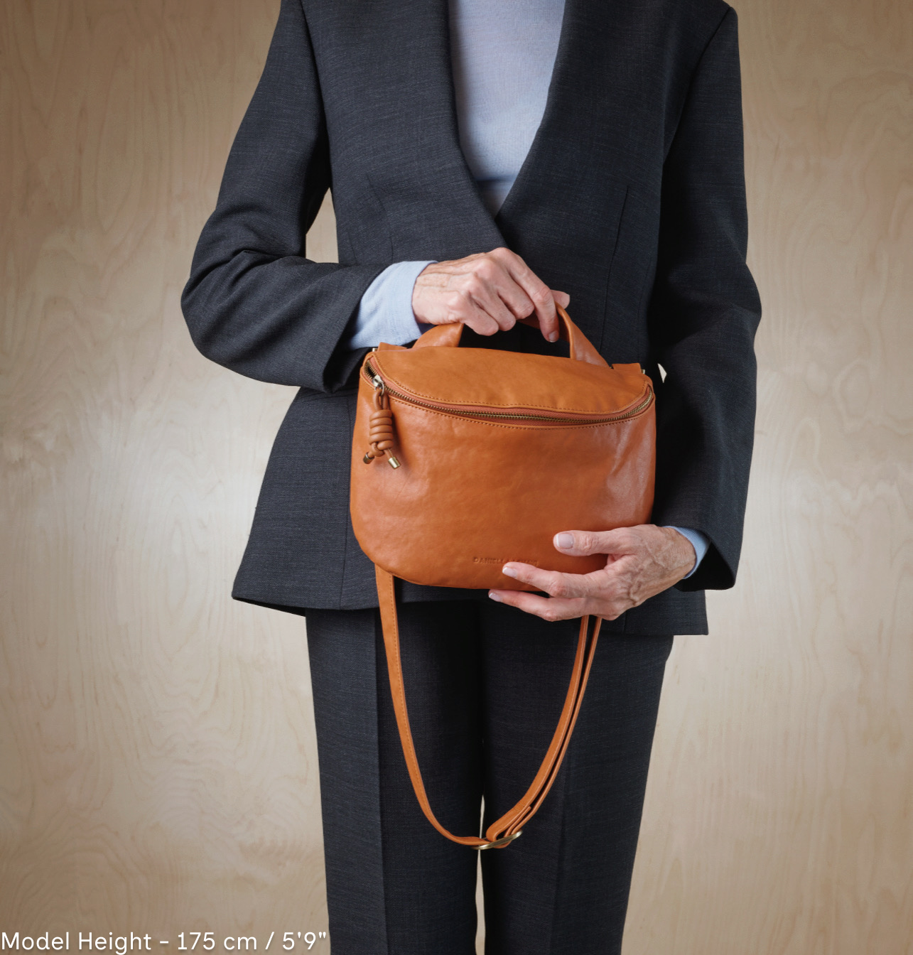 Mia Crossbody Bag התיק המושלם לשימוש יומיומי – נוח ואלגנטי, עם צורה מעוגלת ועור רך למראה נקי ומעודן. גודלו המדויק מאפשר לשאת את כל מה שצריך במהלך היום בנוחות ובלי לוותר על מראה מוקפד.